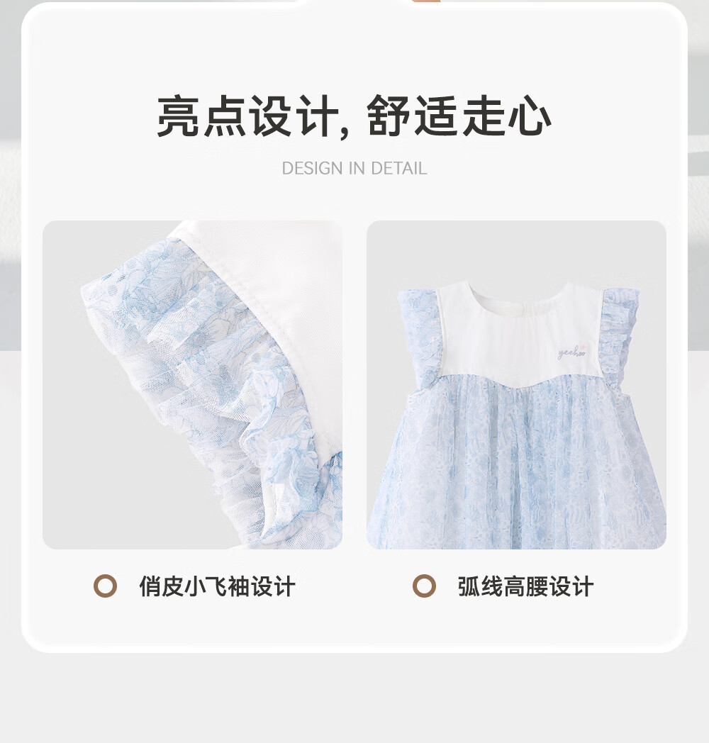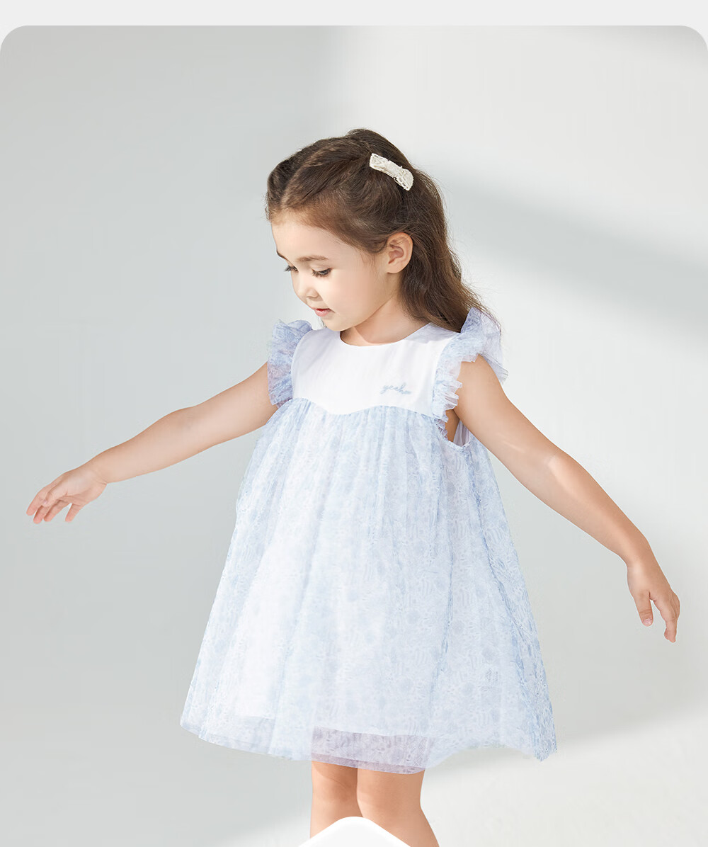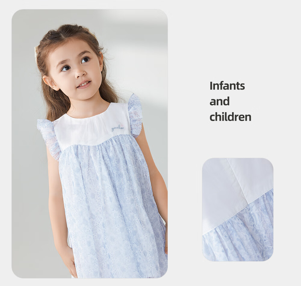 YEEHOO Children's Skirt Summer Refreshing and Breathable Girls Floral Skirt Dress Angel Blue 80 cm