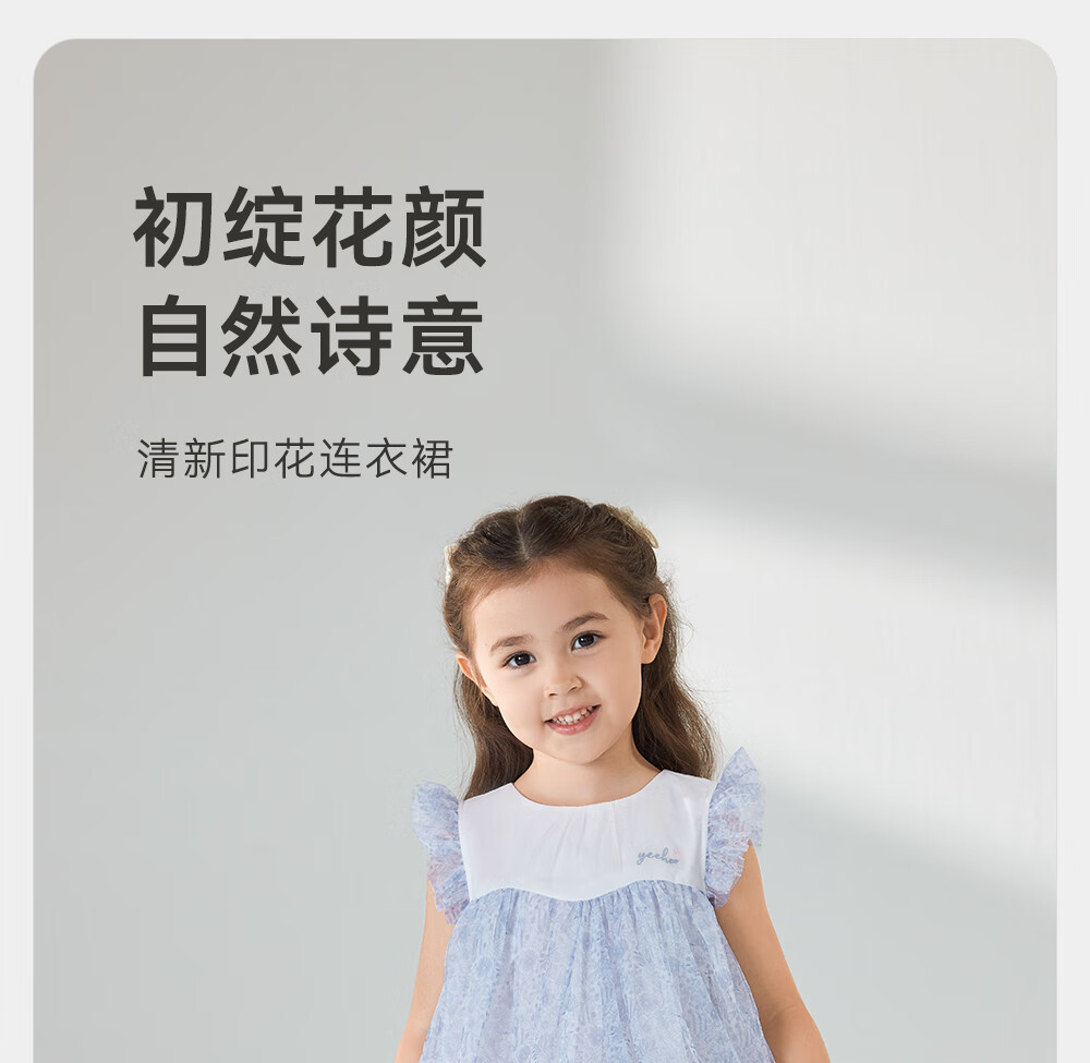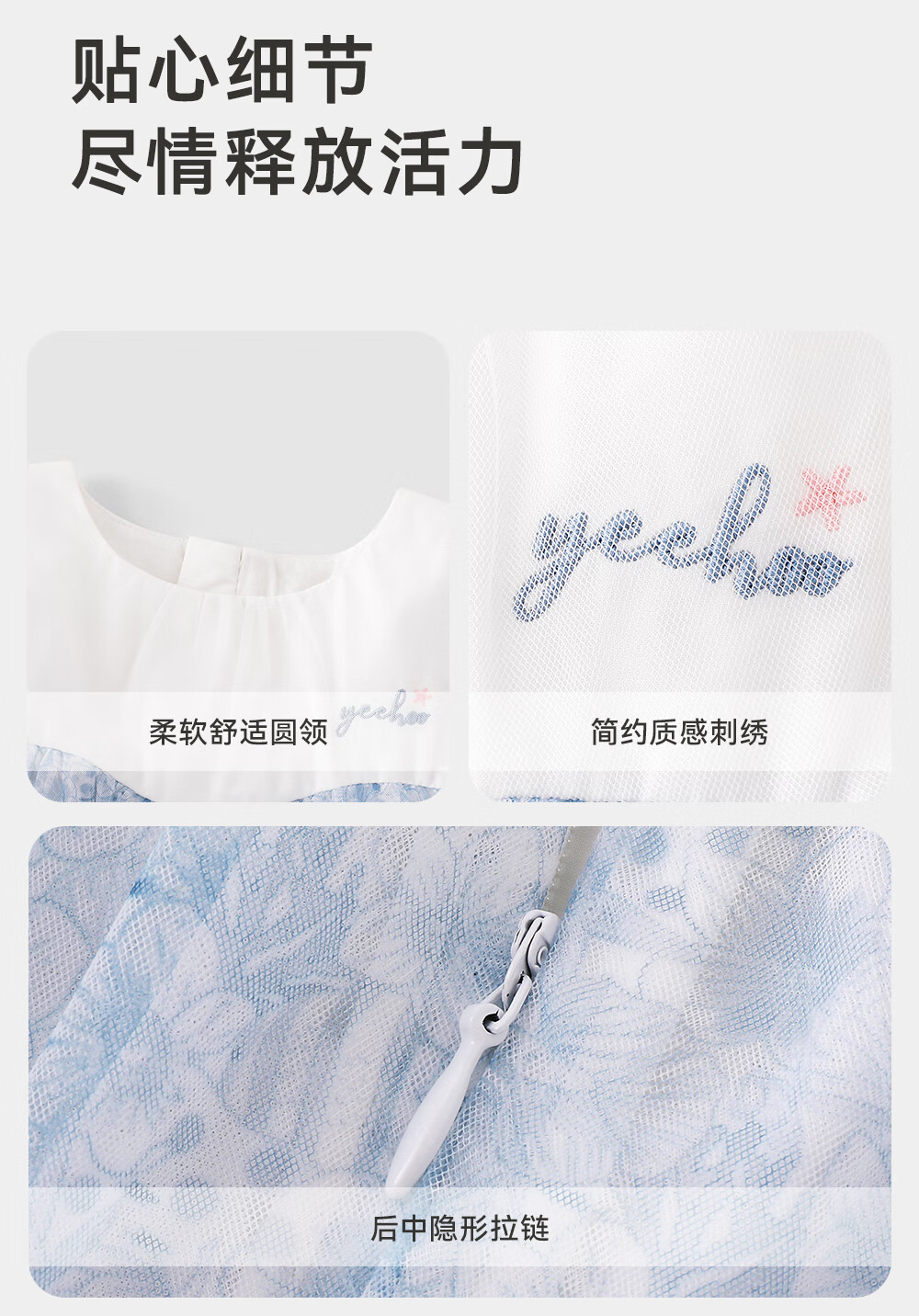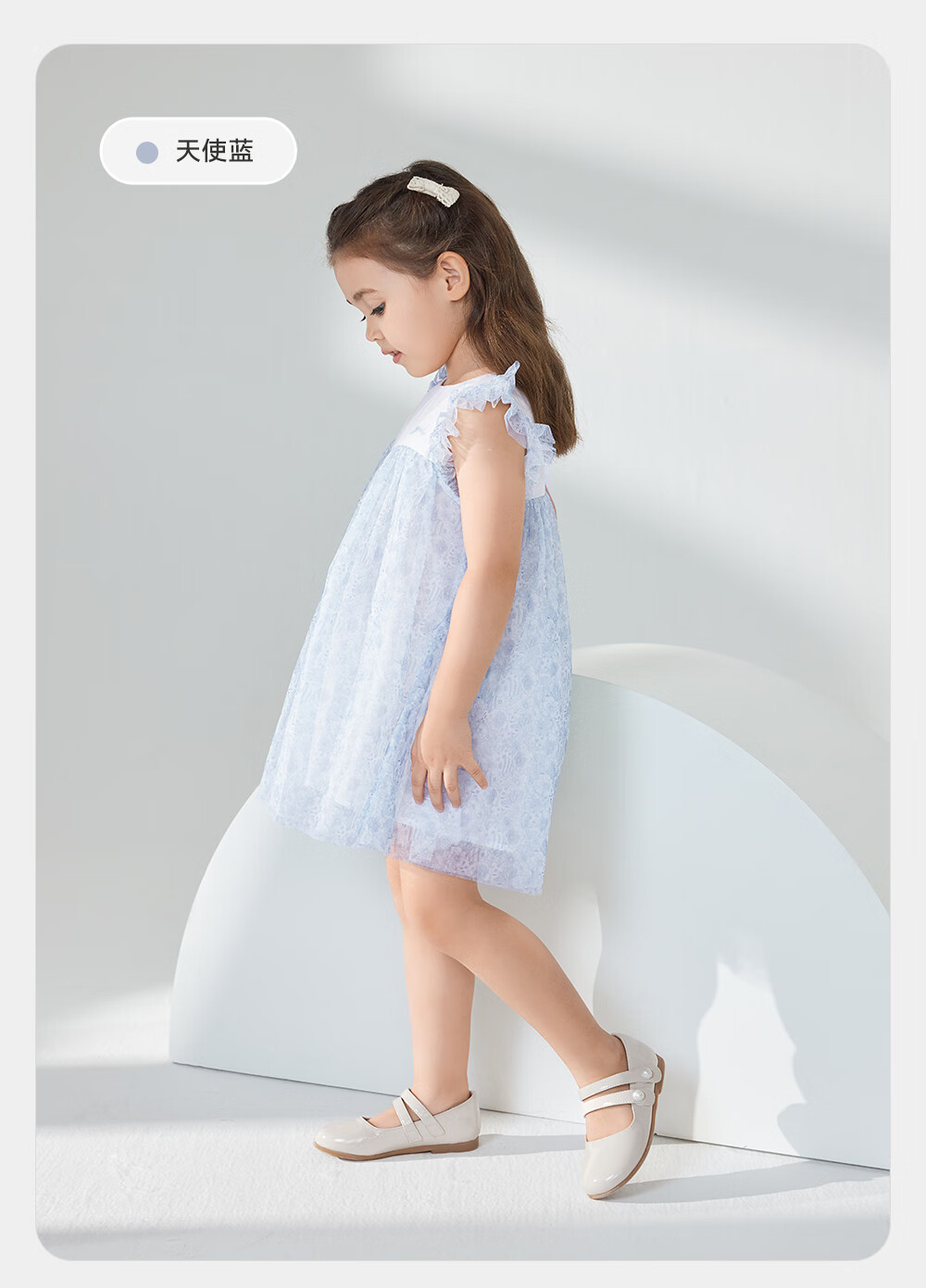 YEEHOO Children's Skirt Summer Refreshing and Breathable Girls Floral Skirt Dress Angel Blue 80 cm