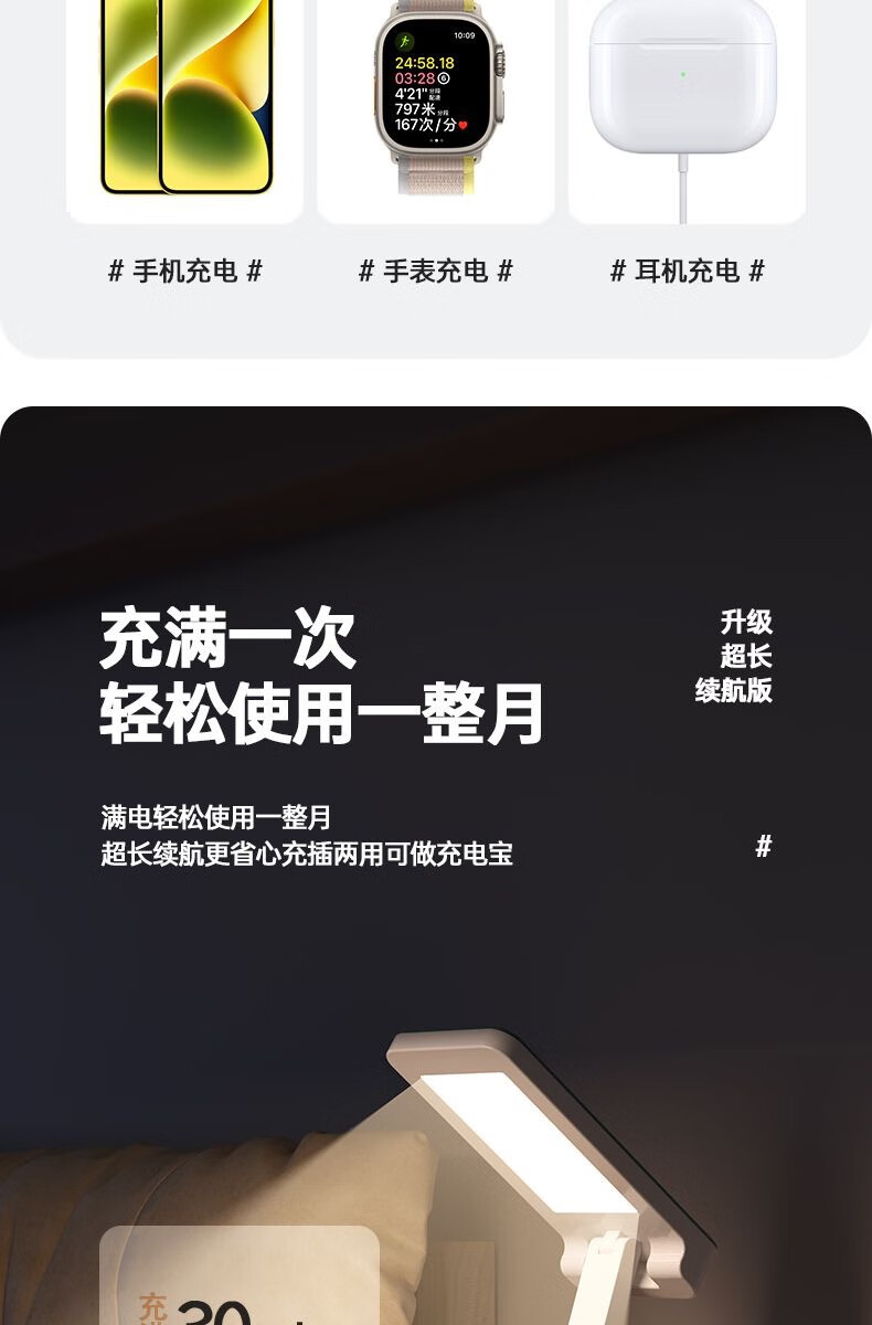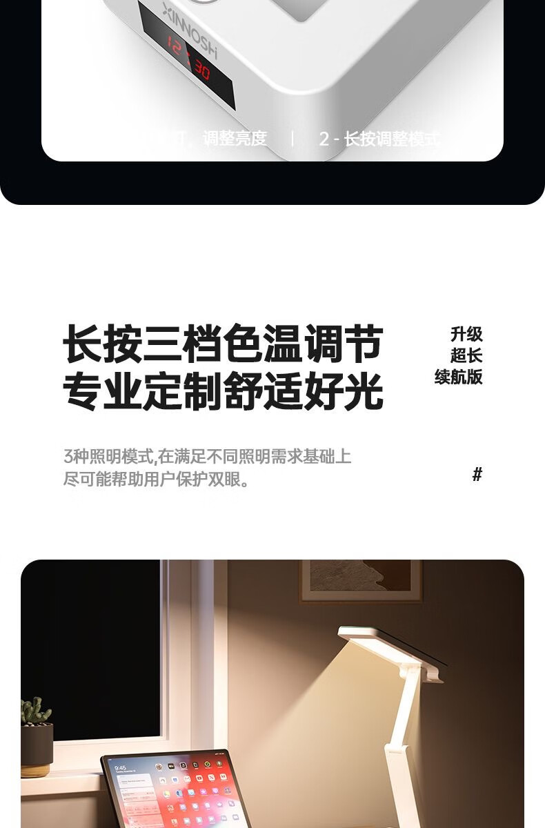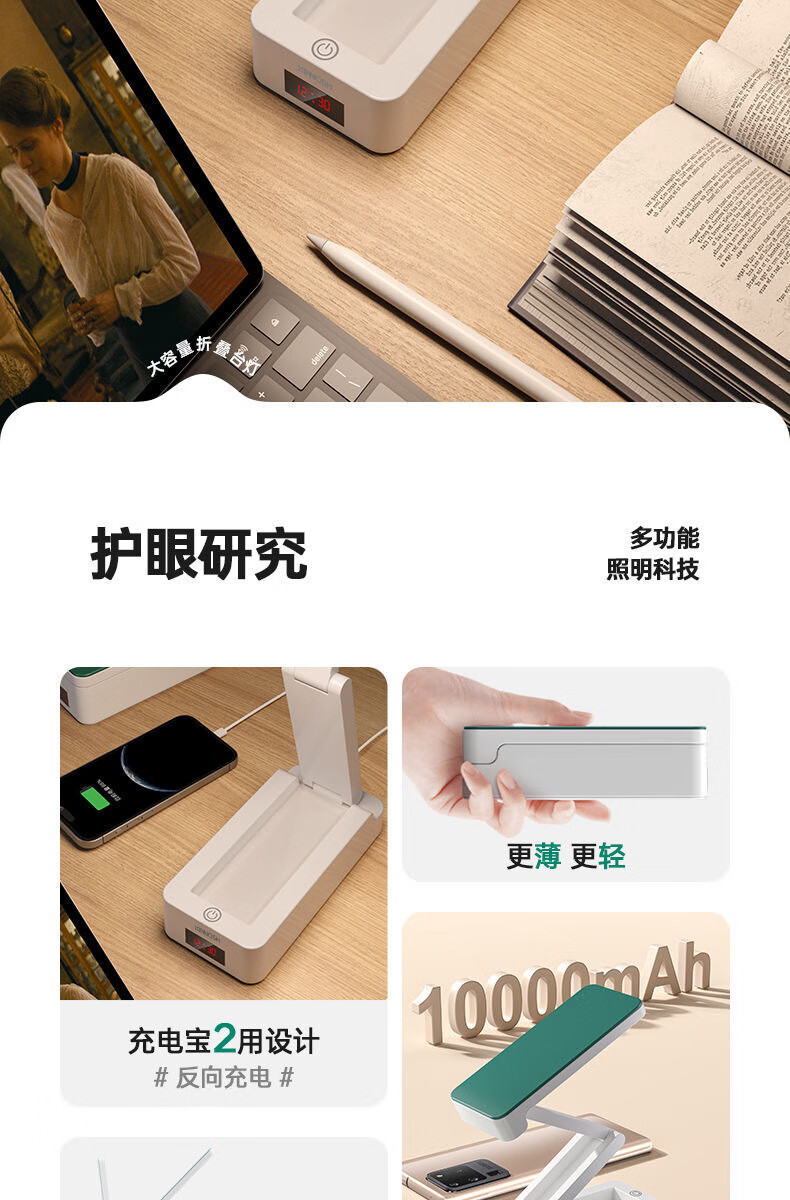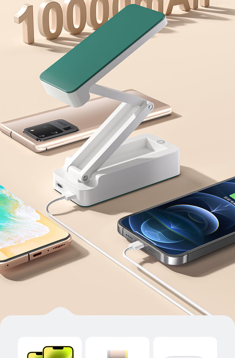 Yunpo full spectrum desk lamp eye protection study special student anti-blue light power bank folding smart reading desk lamp portable le 5400w pink charging plug clock model