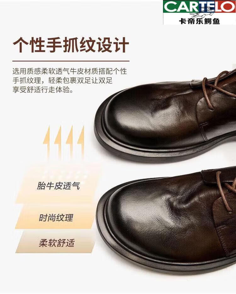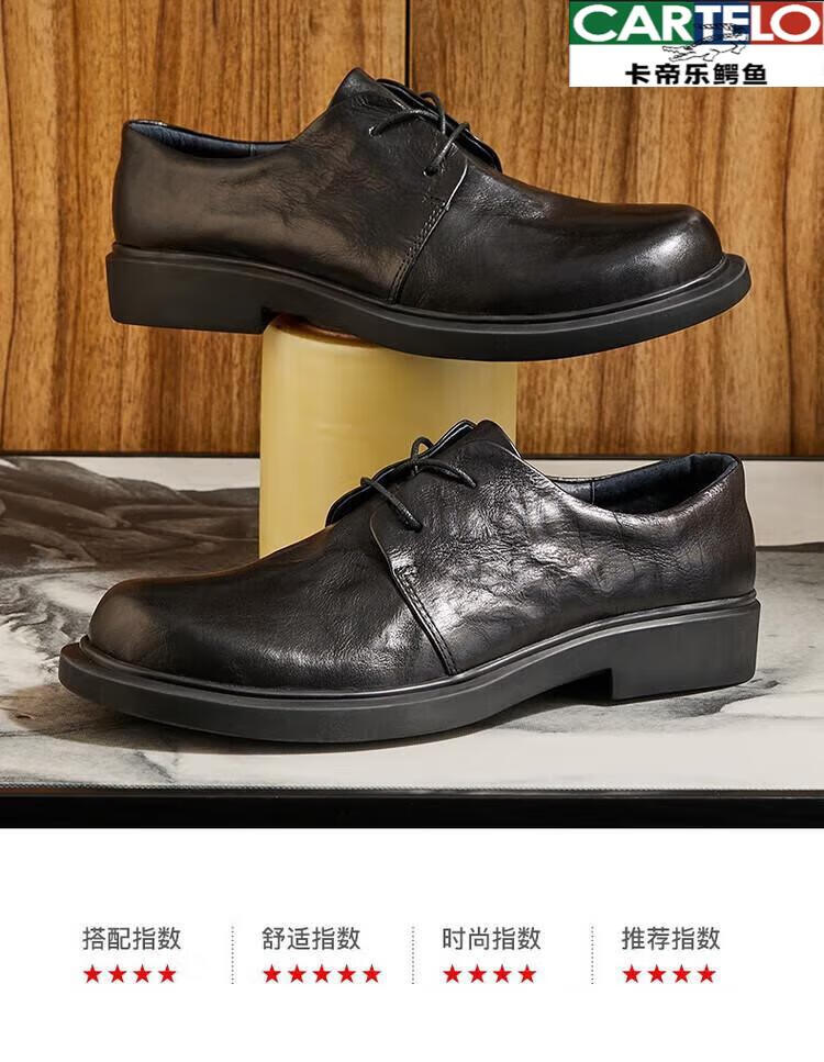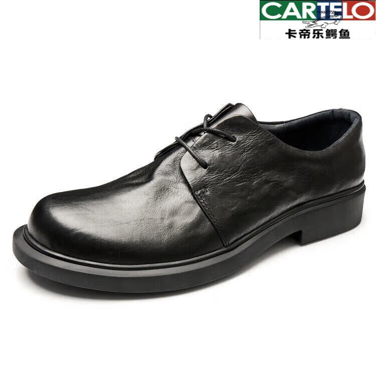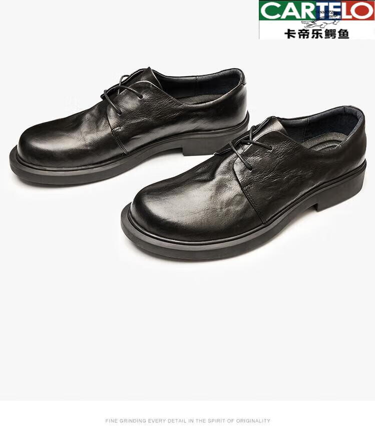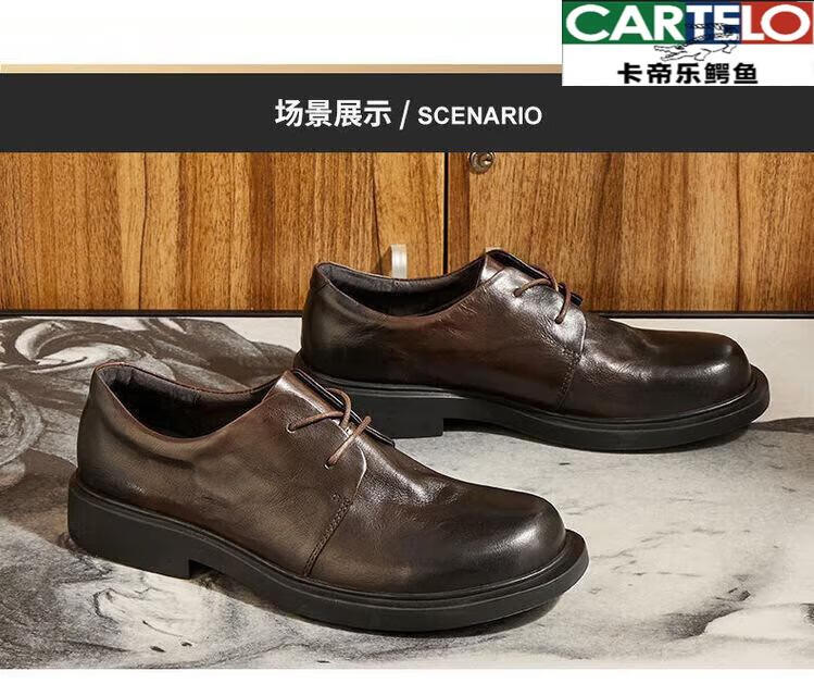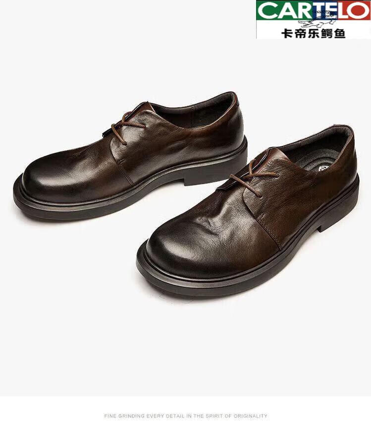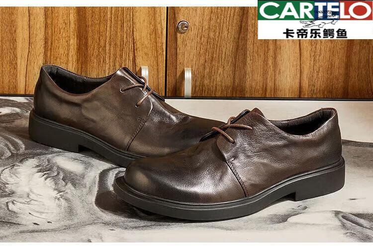 CARTELO crocodile (CARTELO) casual shoes men's business handmade Korean style genuine leather British style leather shoes men's shoes soft sole toe layer cowhide men's shoes brown 39