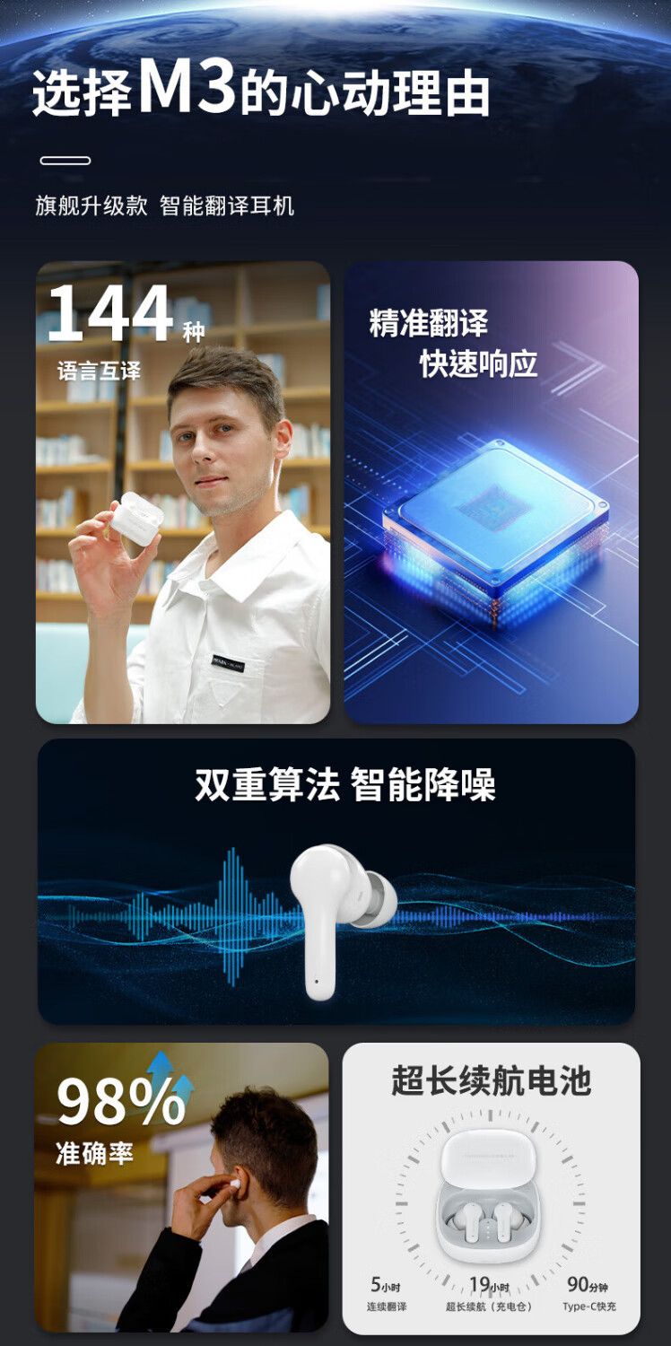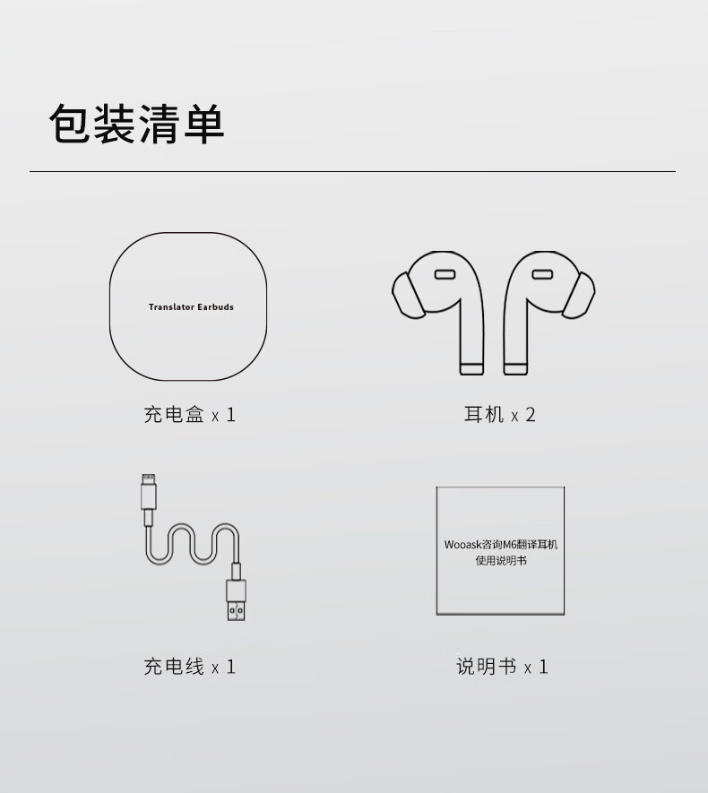 WOOASK Consulting M3 Simultaneous Translation Headset Two-way Translation Bluetooth Call Headset Overseas Travel Conference Headset Multi-Language Intelligent Translation Headset M3 Offline Version (Lightweight Basic Model) Comes with a Lifetime Offline Package