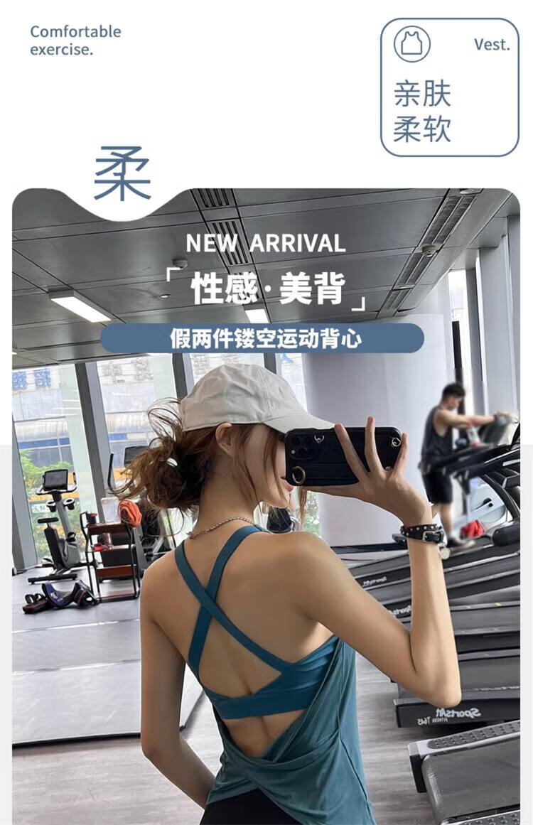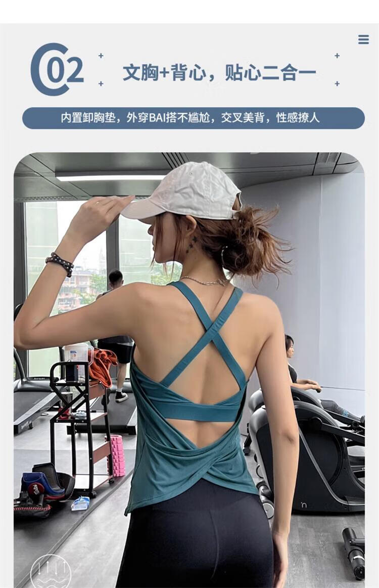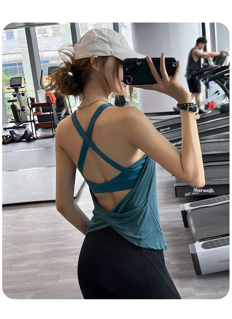 Jincheng Fitness Sexy Yoga Wear Vest with Breast Pads Running Beauty Back Sports Top Pilates Sleeveless T-Shirt New T336 Blue Built-in Removable Chest Pad M