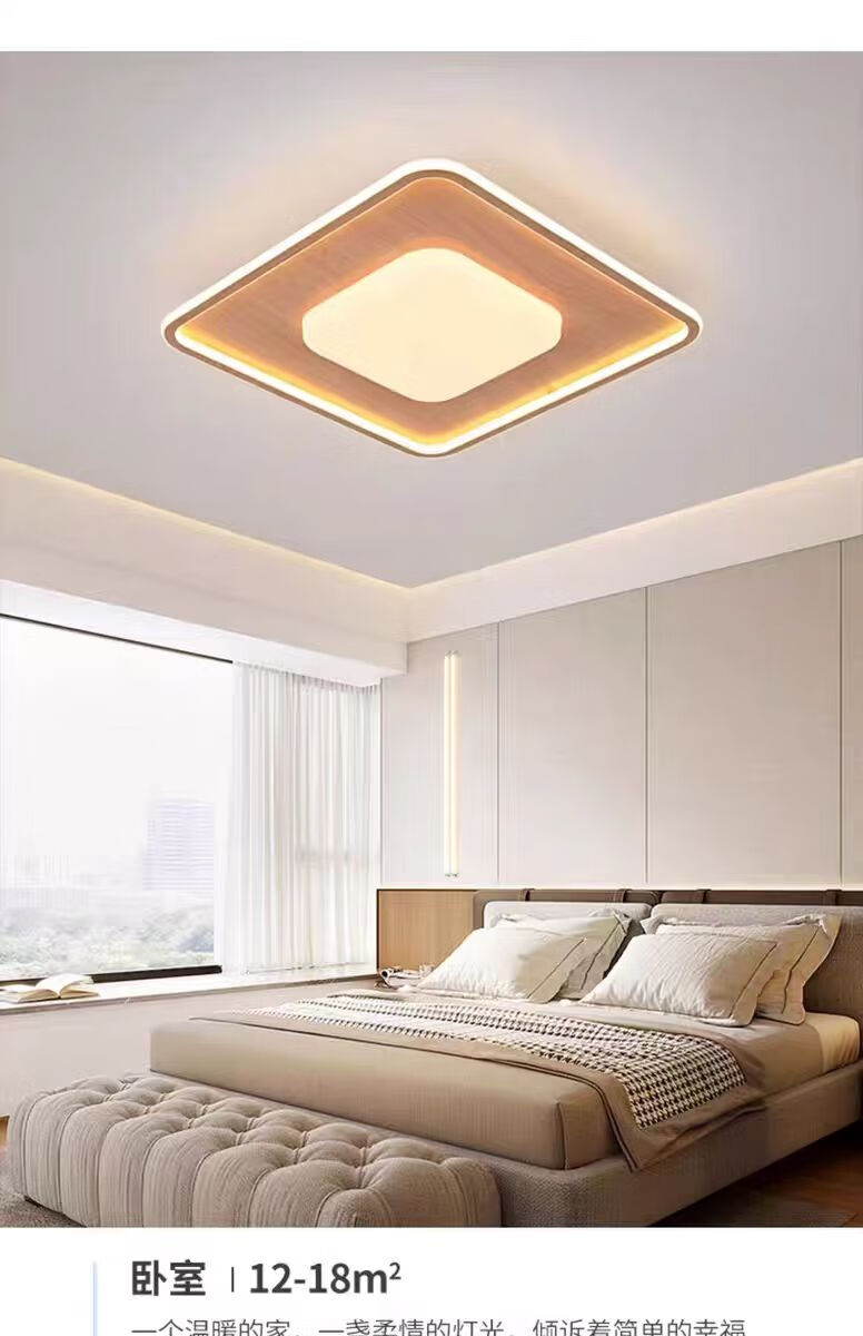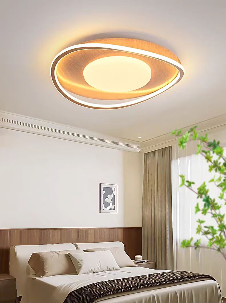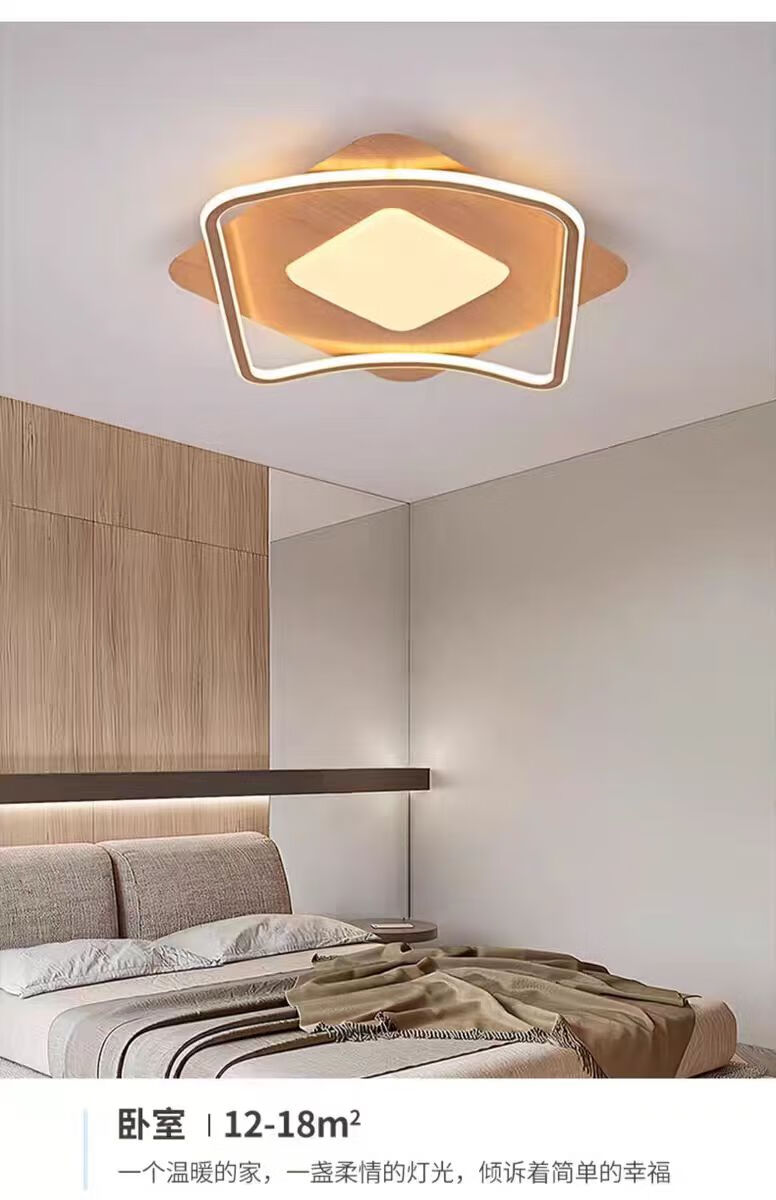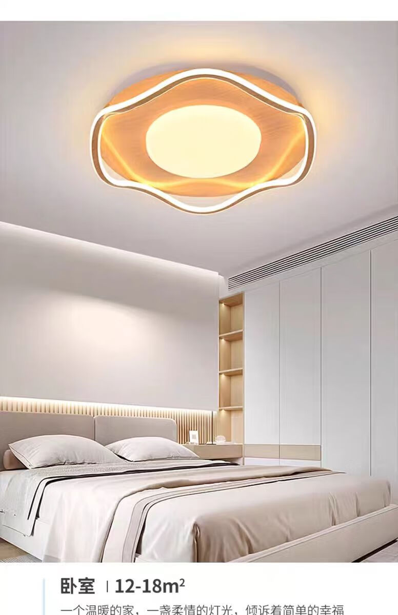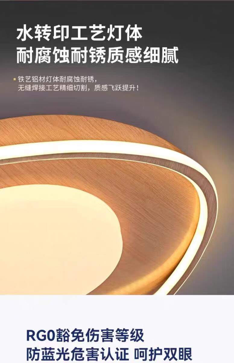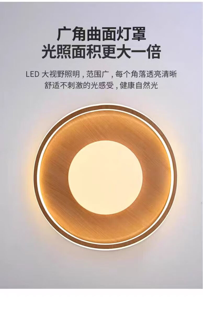 千帐灯新中式卧室书房木纹吸顶灯房间茶室中国风原木色阳台过道走廊灯具 【全光谱原木纹色】-圆40CM 节能LED白光