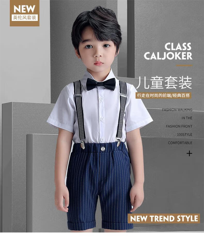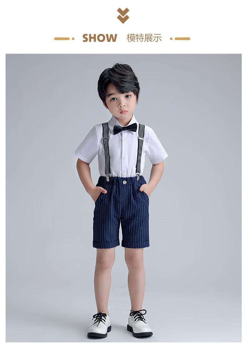 Ormondwei boys' dress children's shirt overalls suit flower girl suit chorus host piano performance suit LB20023 black four-piece suit 110