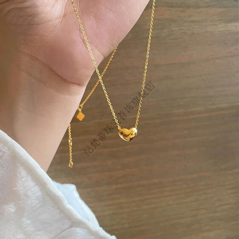 Giventy GEFIODEY non-fading French small love necklace women's 18k bag gold daily versatile peach heart clavicle chain ins summer neck necklace peach heart necklace