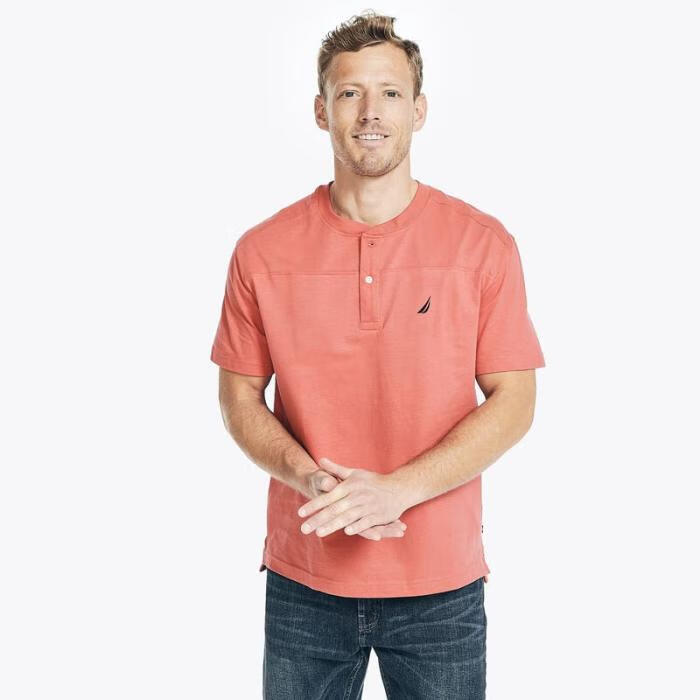NAUTICA Men's Short-Sleeved Henley Shirt Pure Cotton Comfortable Breathable Buttoned Round Neck Loose Casual Style Elegant Trendy Men Angel Blue XS
