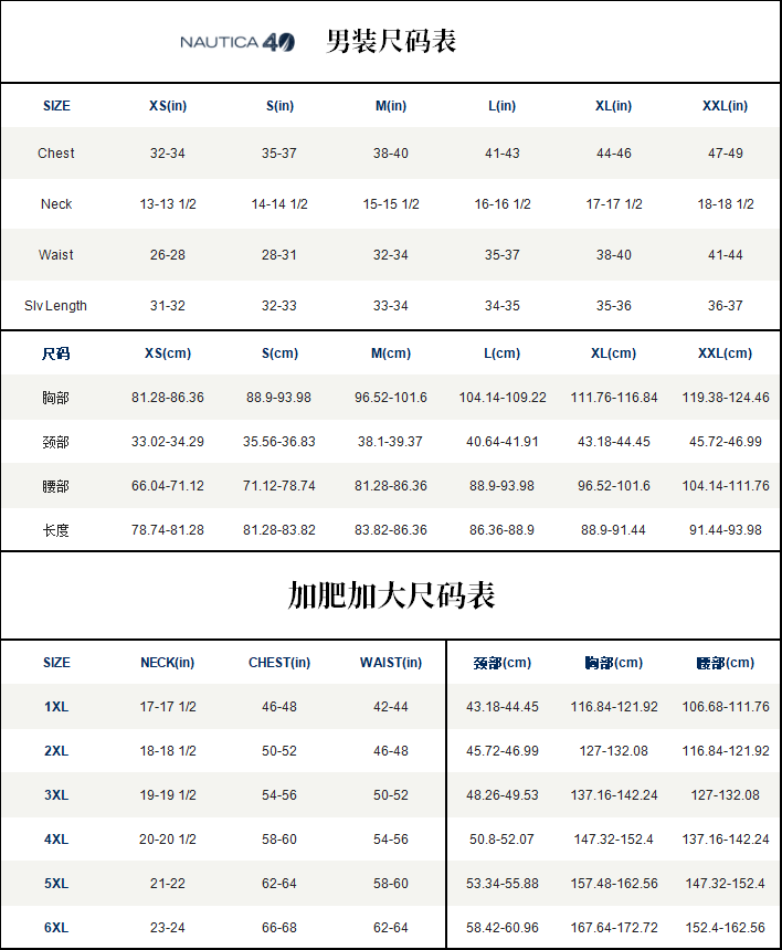 China (cm) 165 / 88-90 170 / 96-98 175 / 108-110 180 / 118-122 185 / 126-130