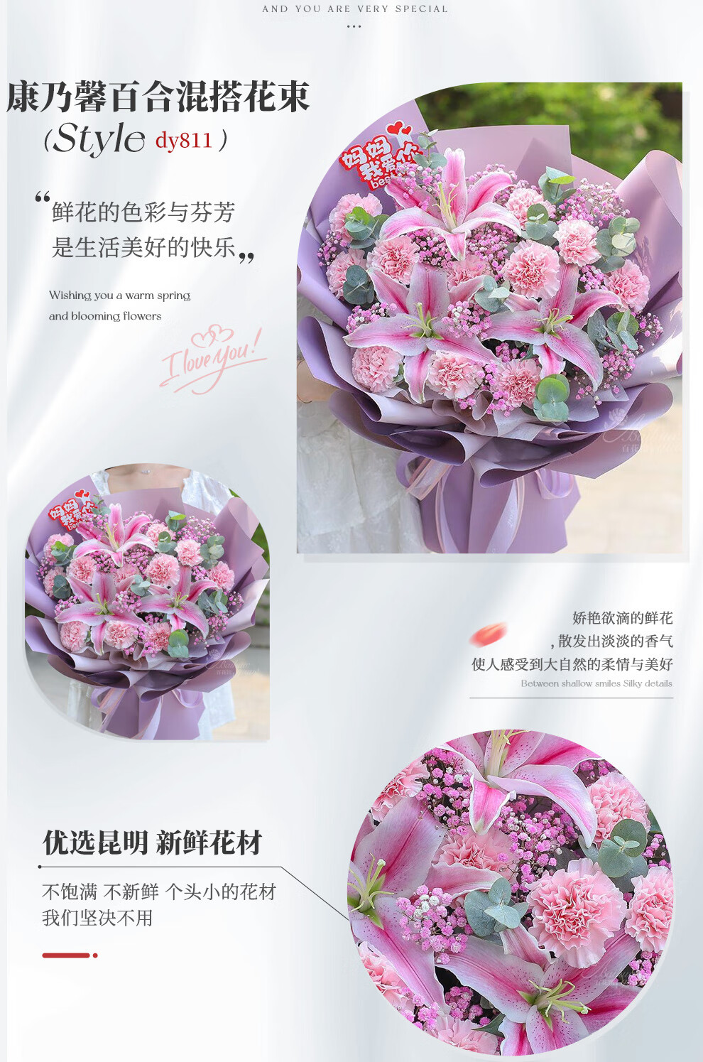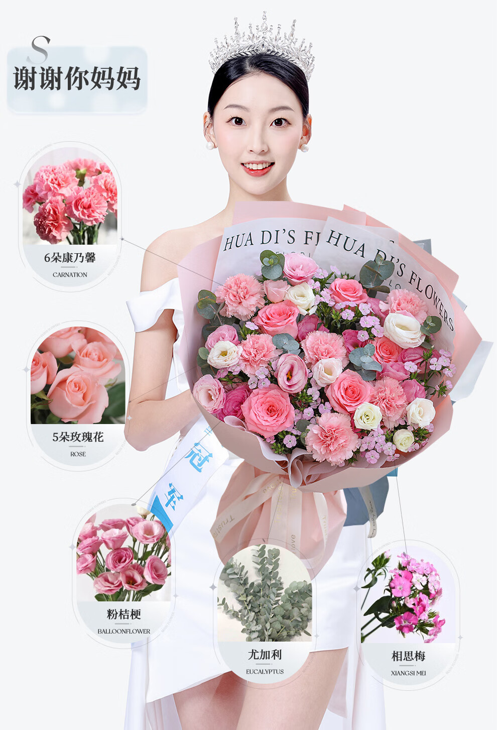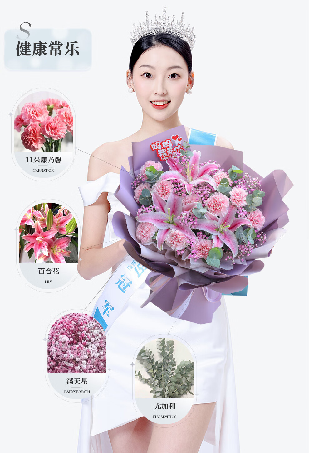 Baihuaguan Flower Express Carnation Bouquet Real Flowers Birthday Gift Flowers for Mom, Mother and Elders Delivered within Hours in the City Thank You Mom|dy835