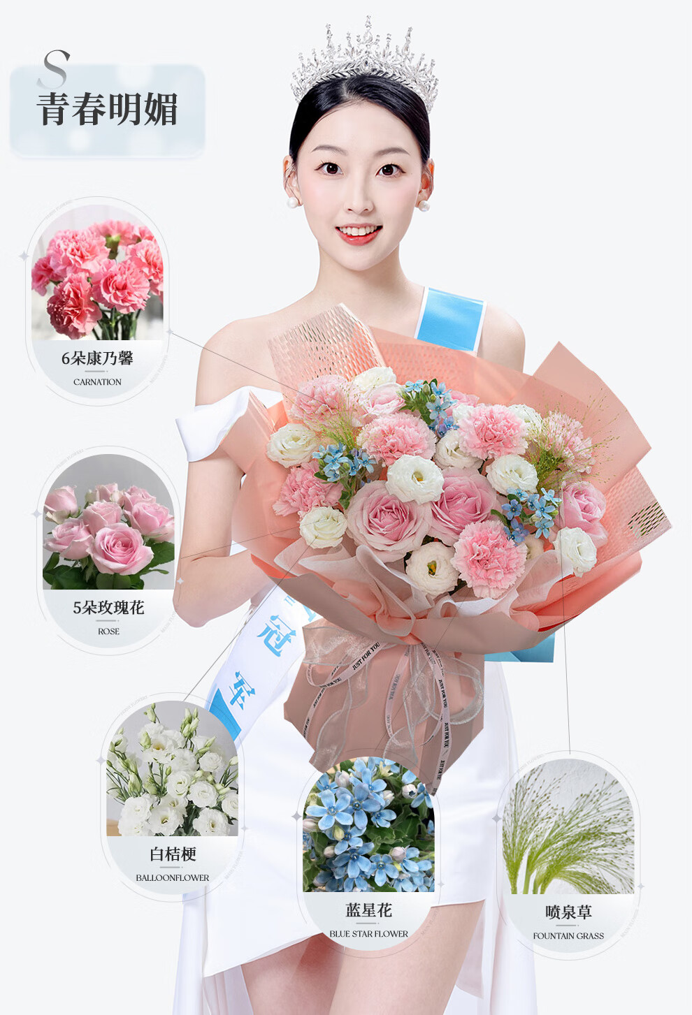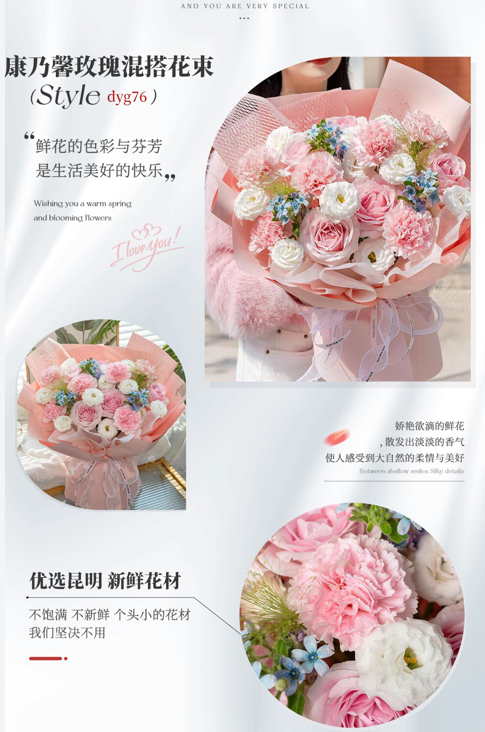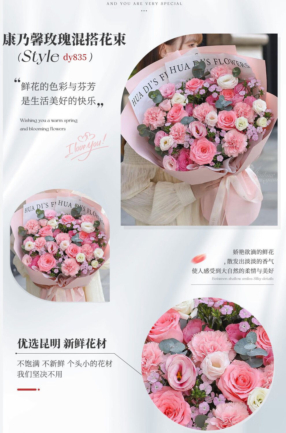 Baihuaguan Flower Express Carnation Bouquet Real Flowers Birthday Gift Flowers for Mom, Mother and Elders Delivered within Hours in the City Thank You Mom|dy835