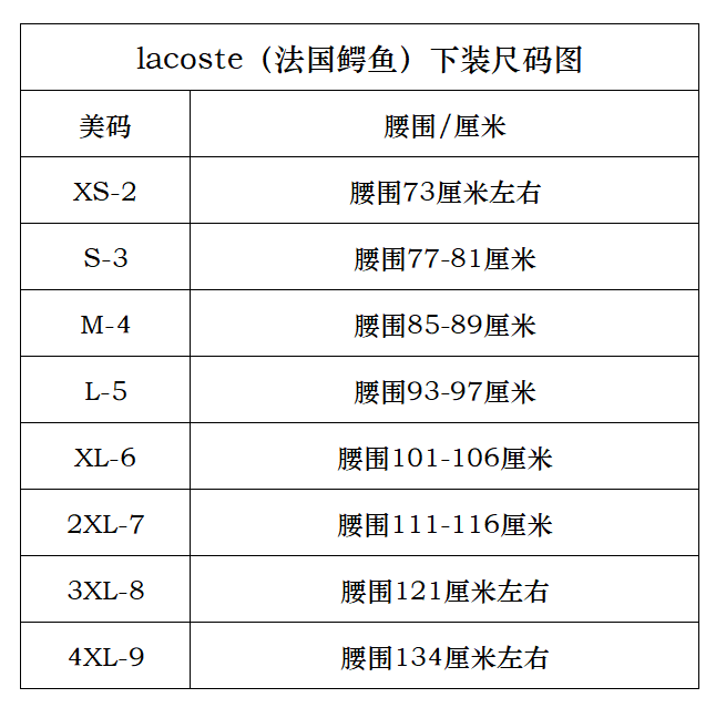 China (cm) 160-165/84-86 165-170 / 88-90 167-172 / 92-96 168-173 / 98-102 170-176 / 106-110