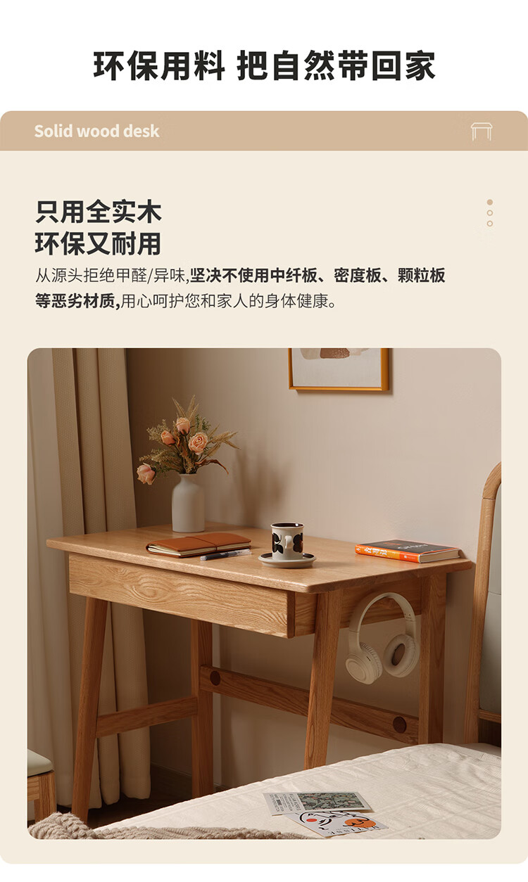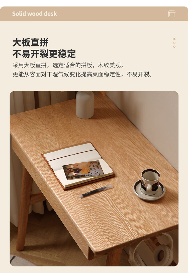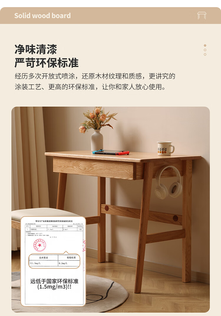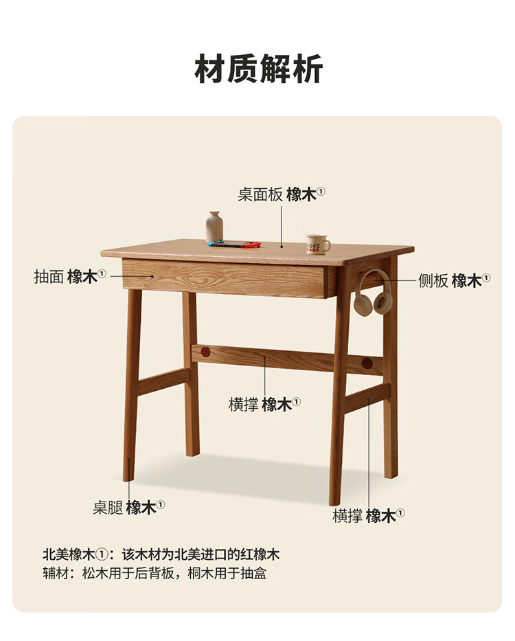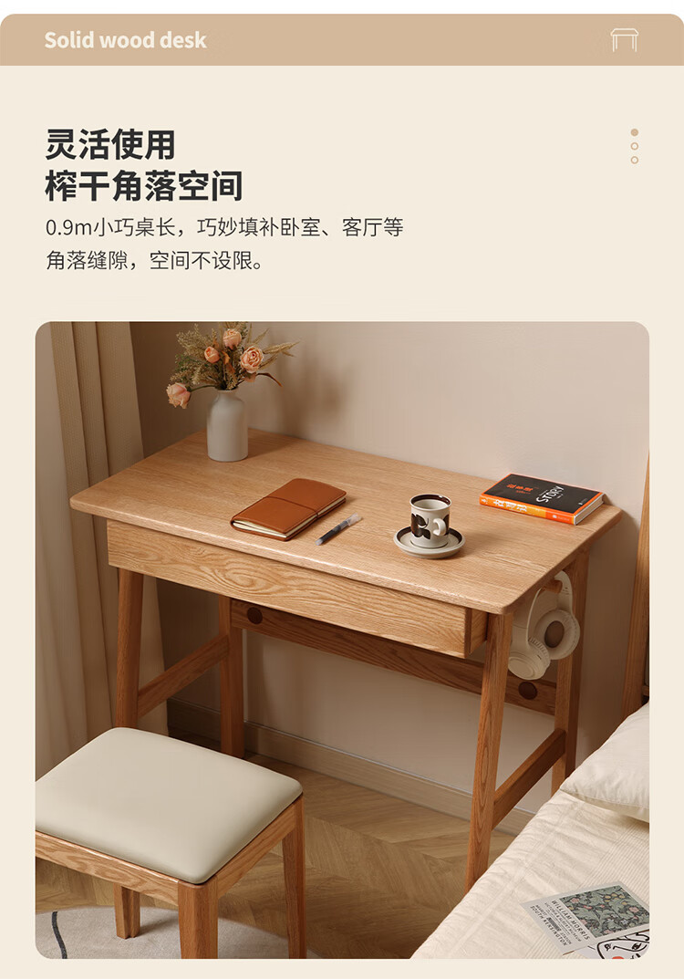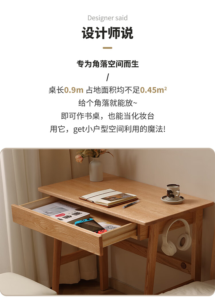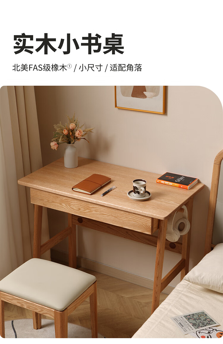 One wood all solid wood desk, imported oak desk, simple modern computer desk, multi-functional writing desk, study furniture, desk 0.9 meters, single drawer, FAS grade oak