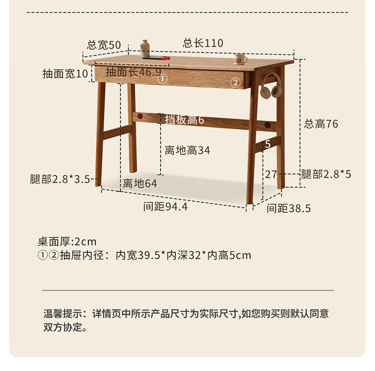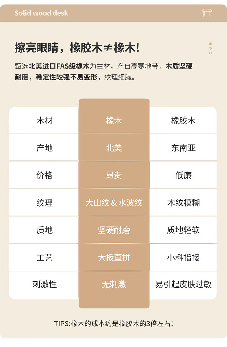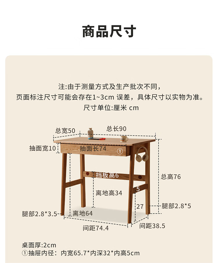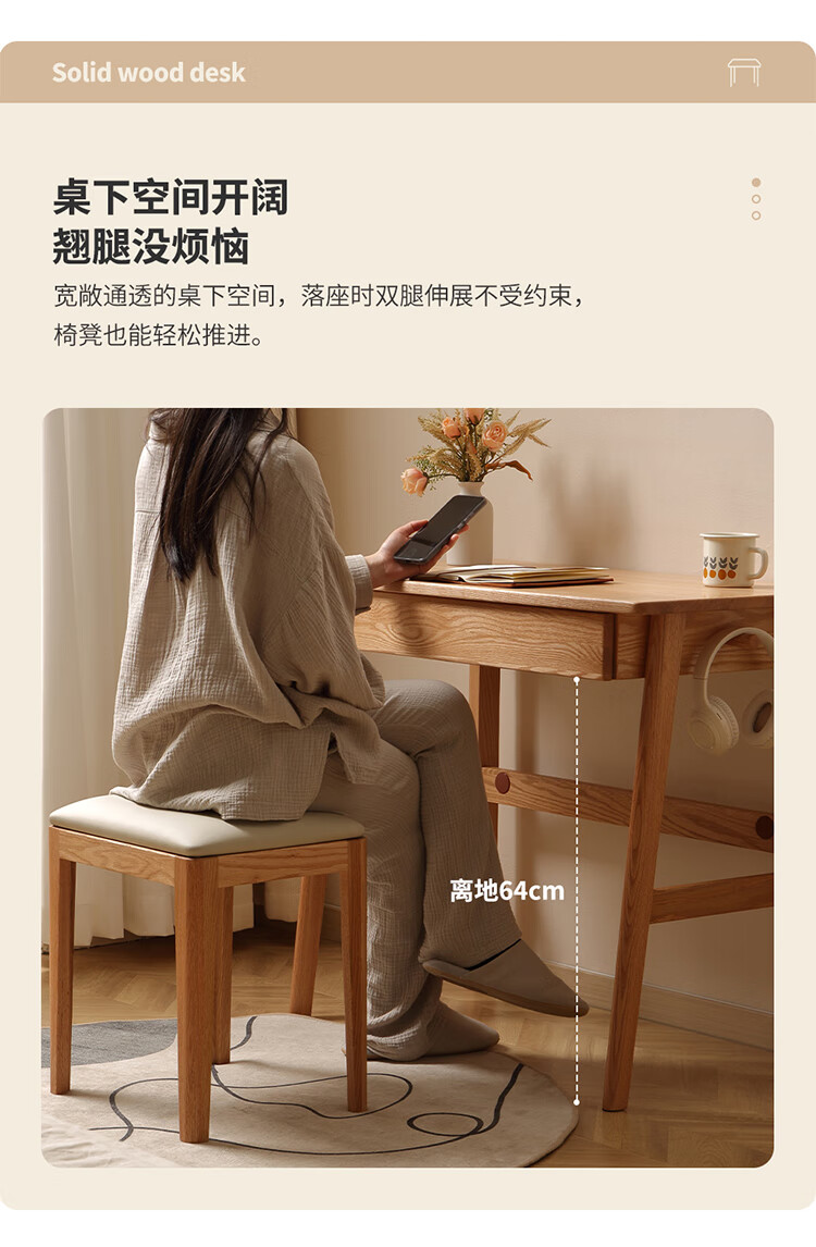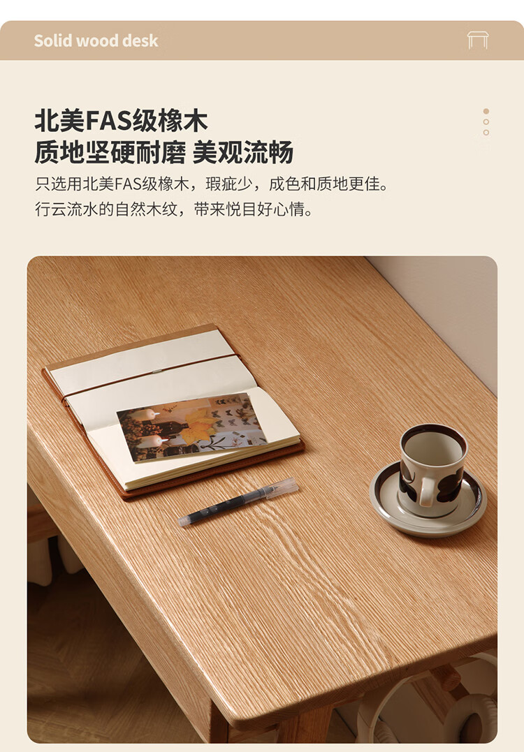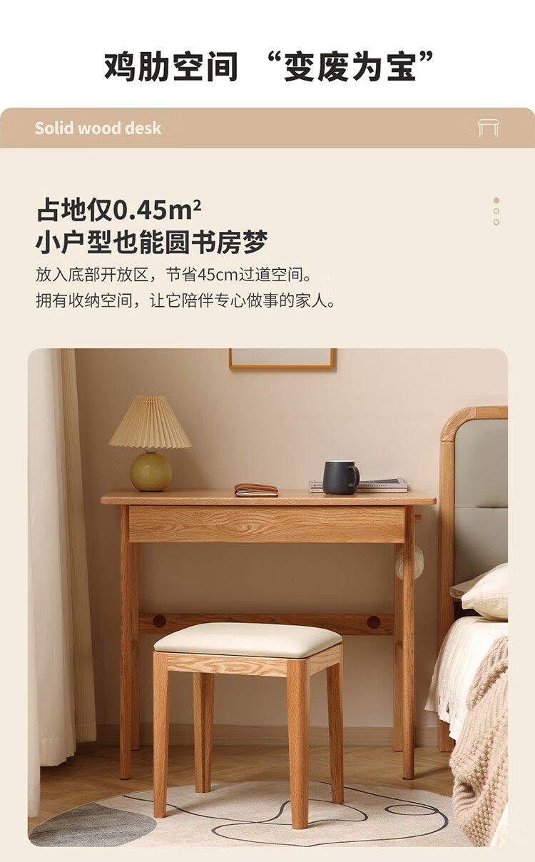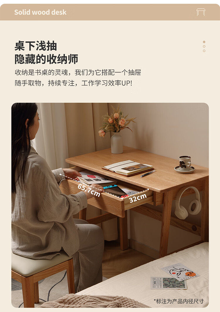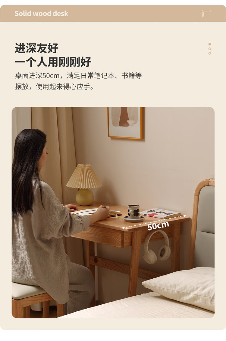 One wood all solid wood desk, imported oak desk, simple modern computer desk, multi-functional writing desk, study furniture, desk 0.9 meters, single drawer, FAS grade oak