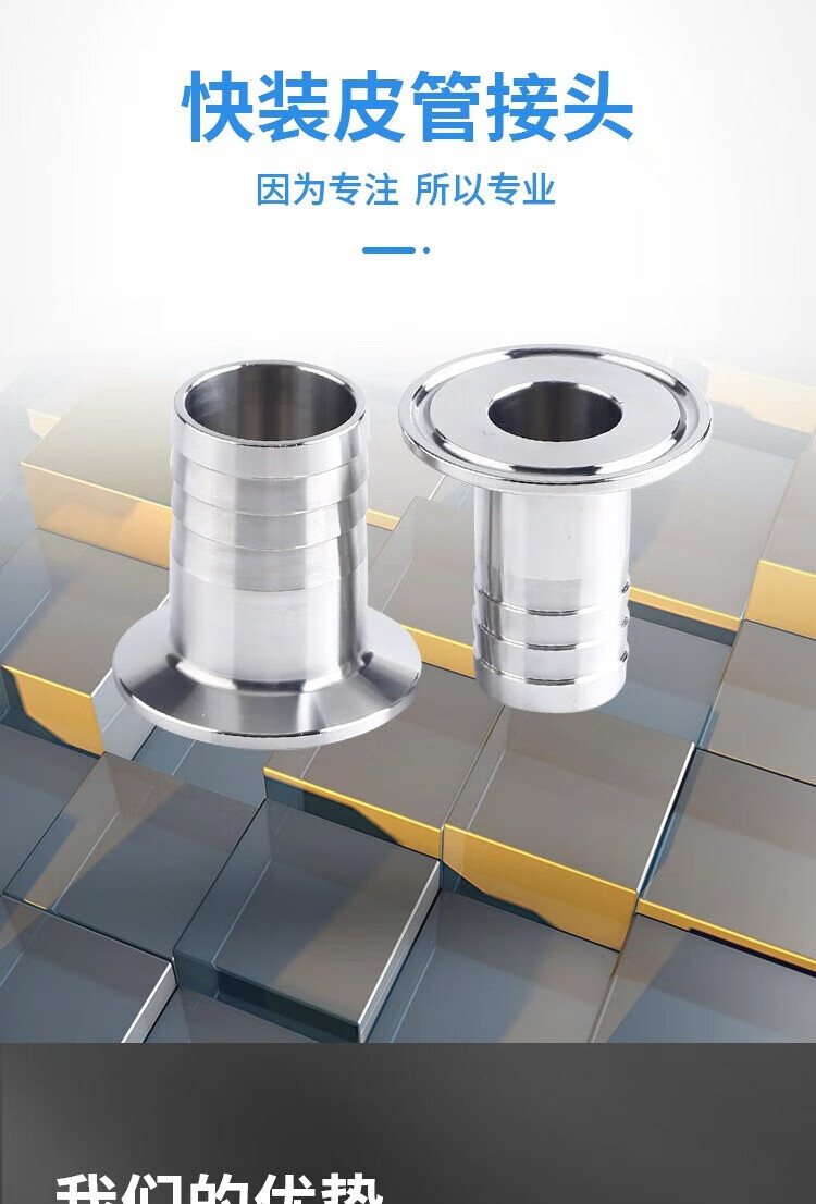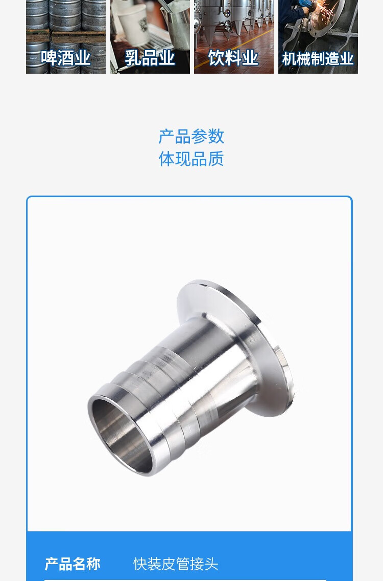Lingjian 304 stainless steel sanitary grade quick-fit leather pipe joint clamp type quick-connect hose pagoda head chuck faucet 32 chuck 50.5 height 60mm
