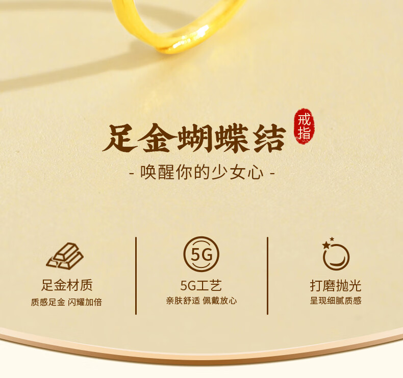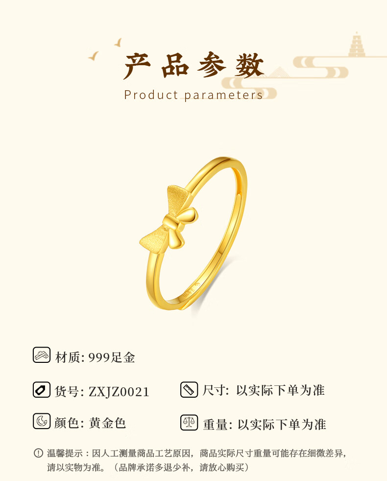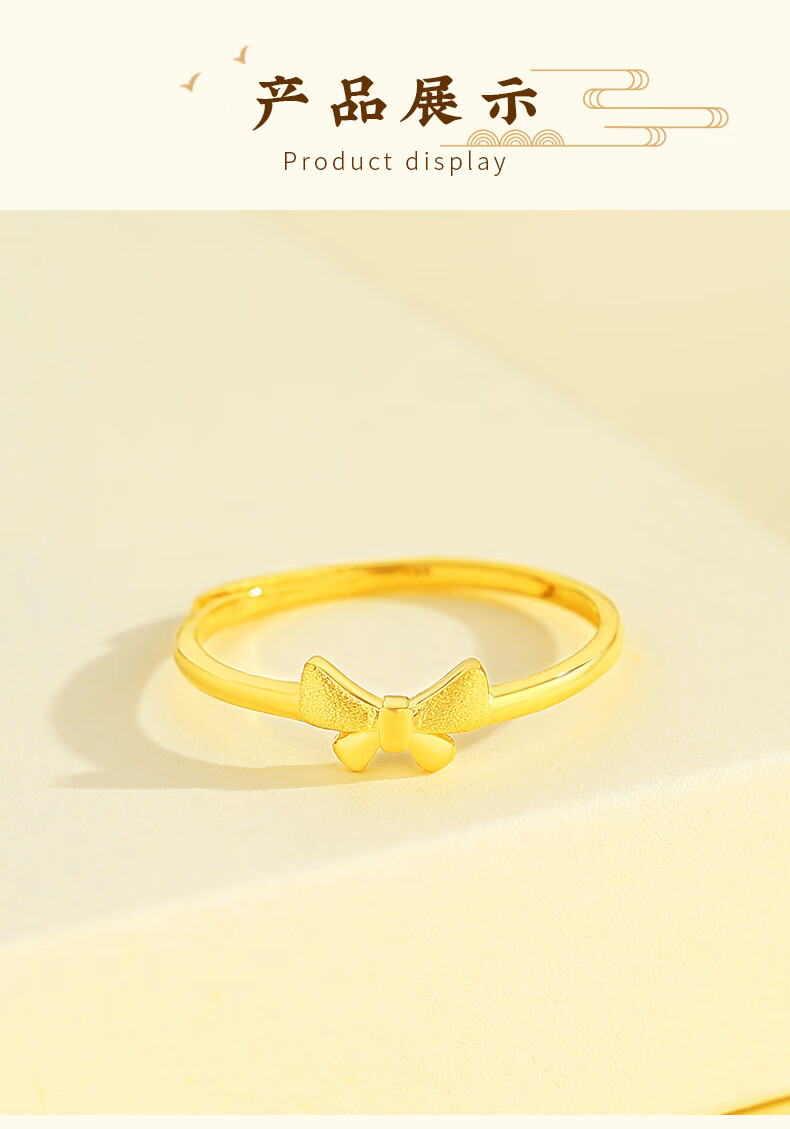 CHINA GOLD Gold Ring Women's Pure Gold Bow Ring Birthday Gift for Girlfriend and Wife Bow Ring Gold Weight Approximately 1.4g + Selection Gift Box