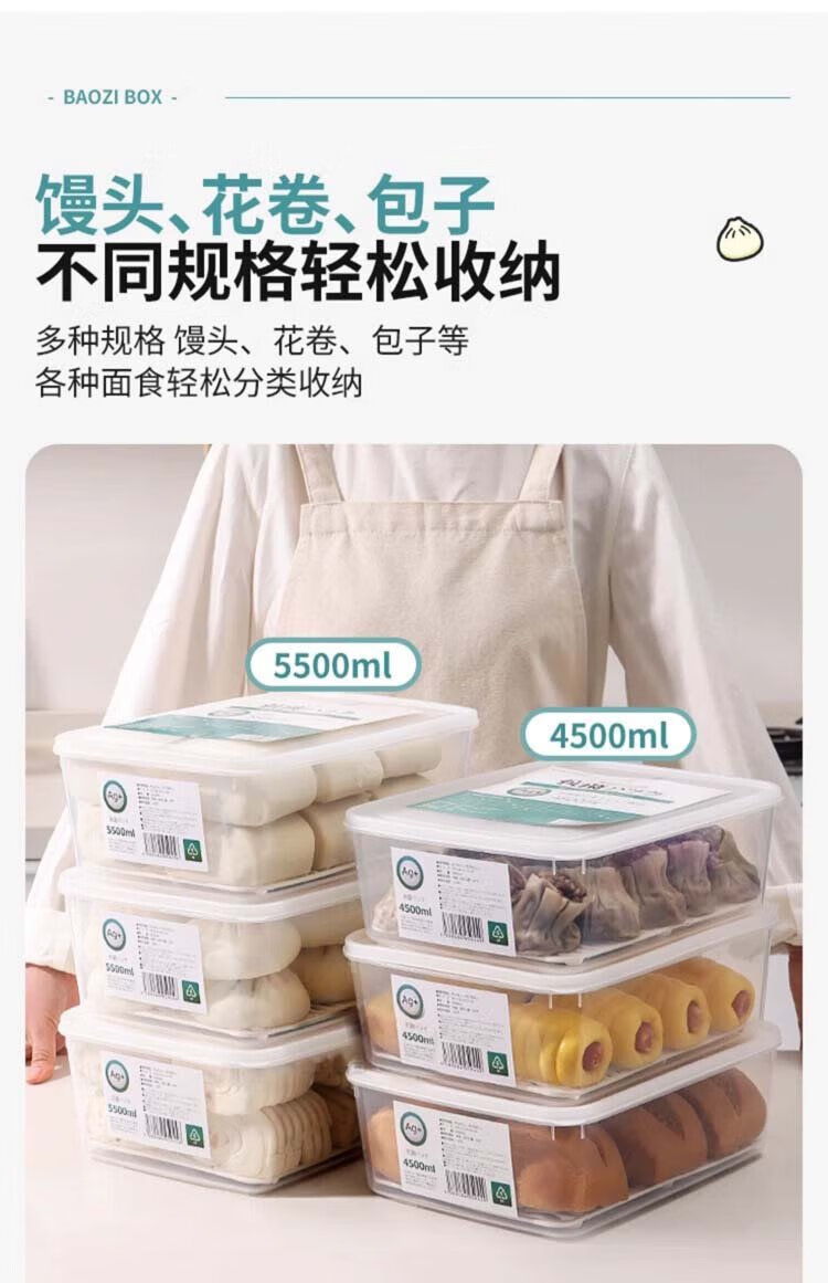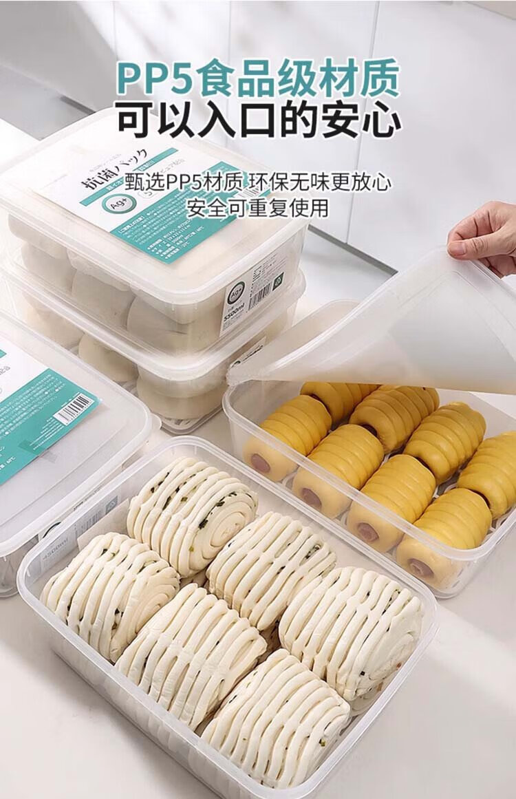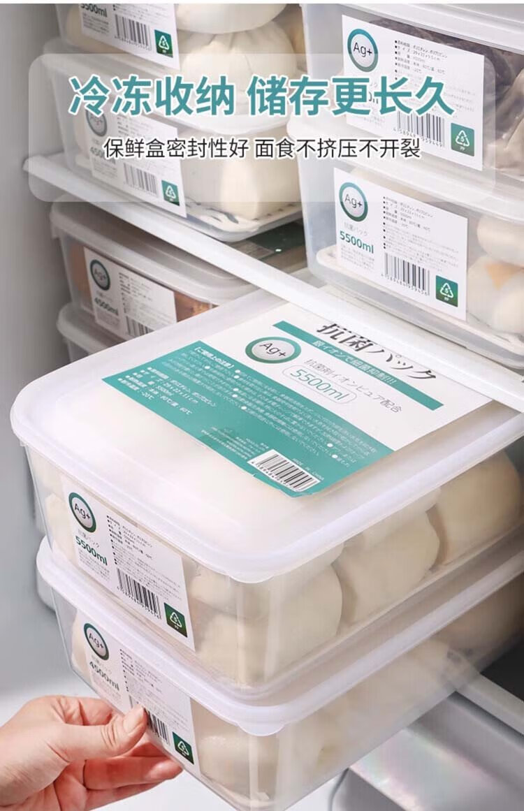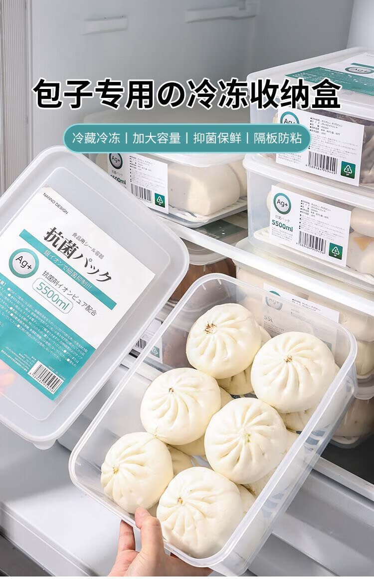 Home Story Japanese Antibacterial Steamed Buns Refrigerator Freezer Special Storage Box Large Capacity Dumplings Food Grade Sealed Preservation Box Antibacterial Storage Box 5500ml 2 Pack 2 Layers