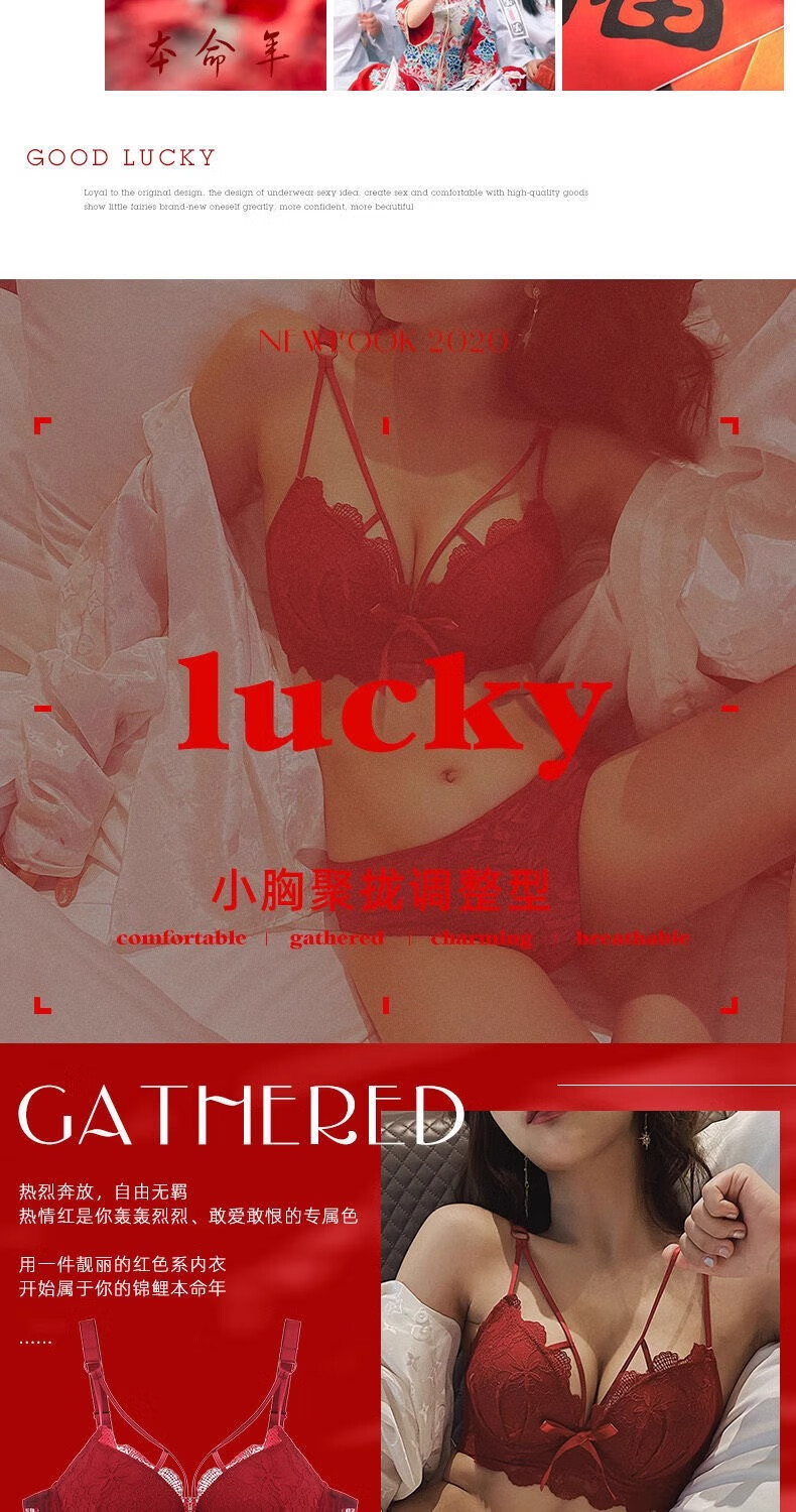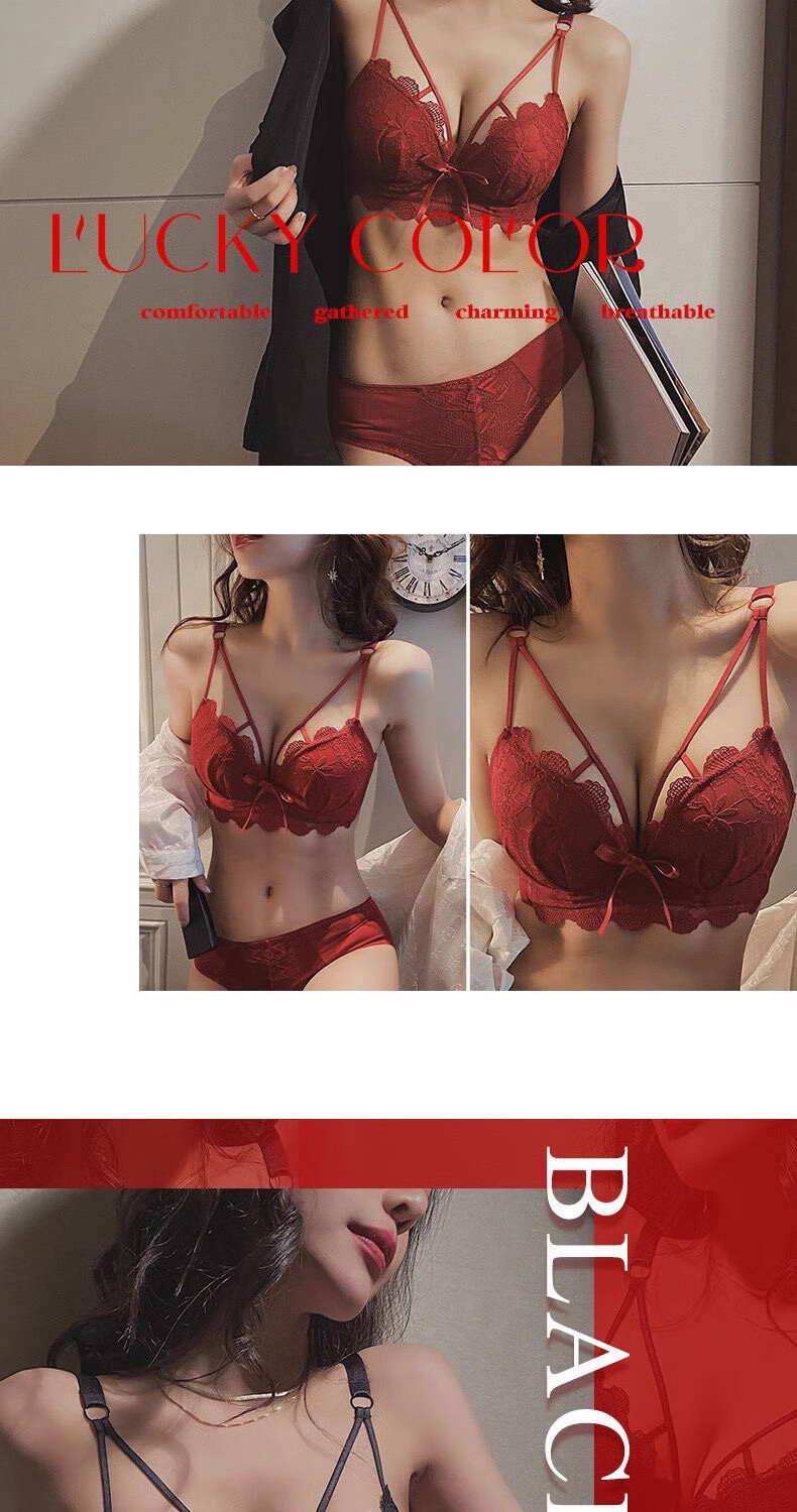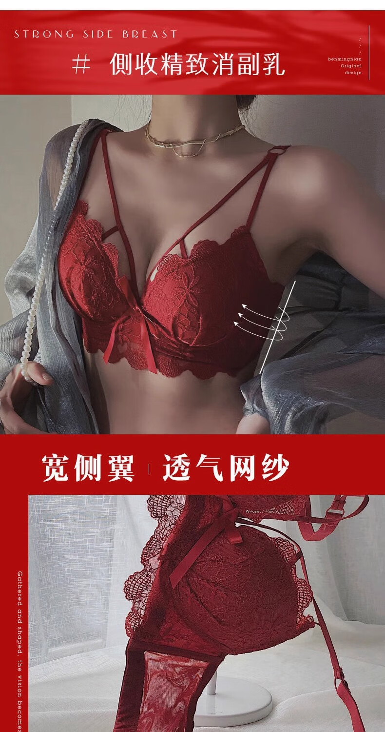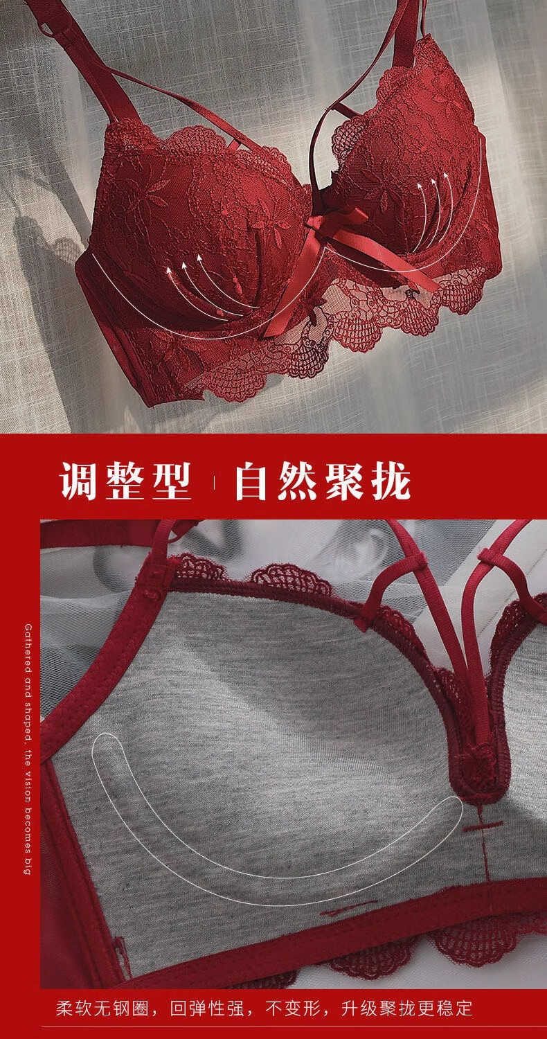 Aimu Qiuxia brand bra set for wedding brides in the year of their birth year, sexy red underwear for women with small breasts push-up adjustment, red set 38/85B