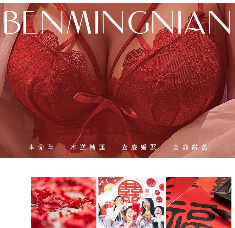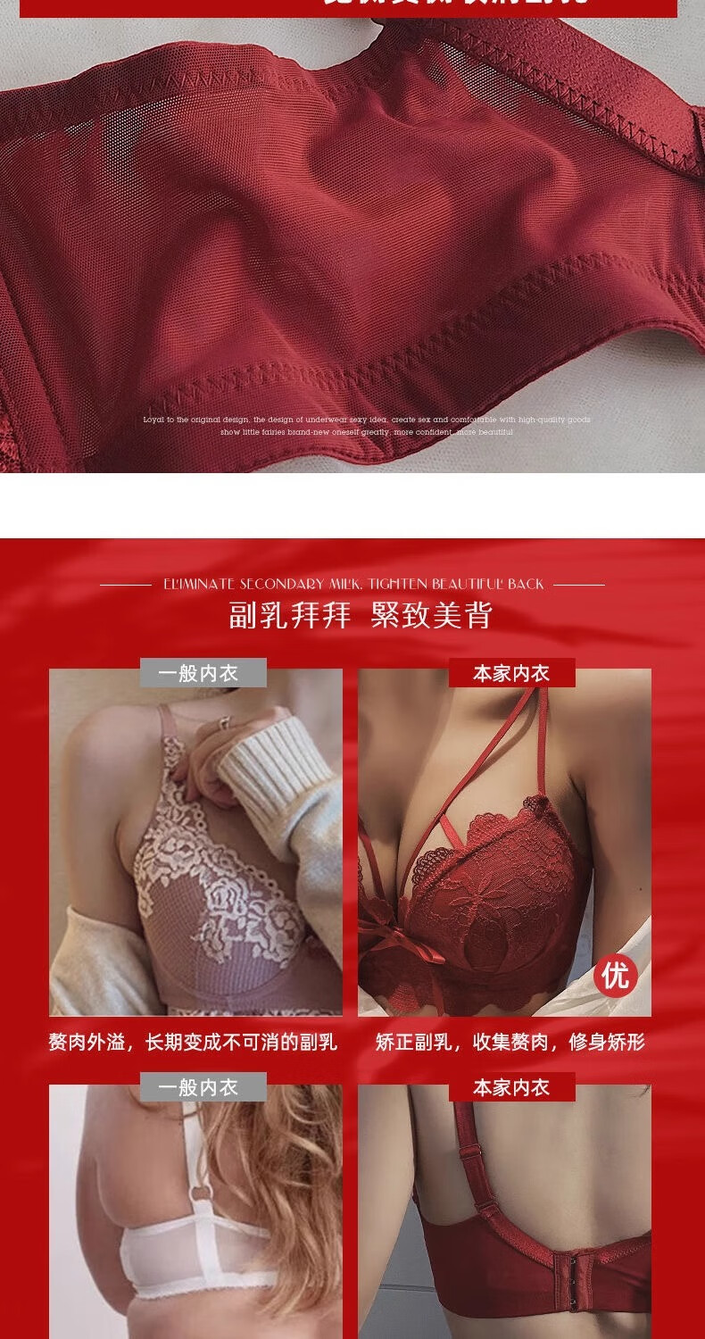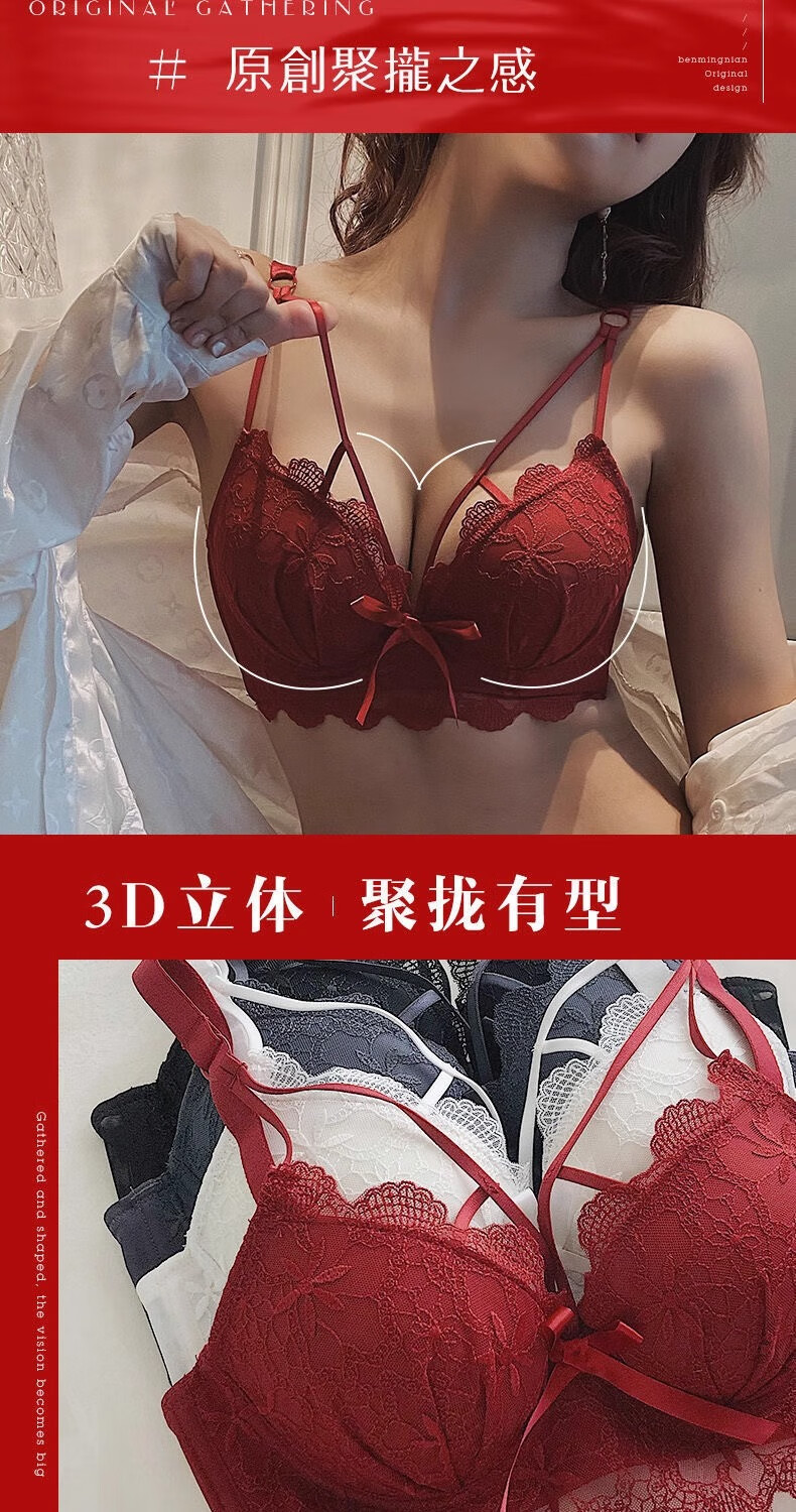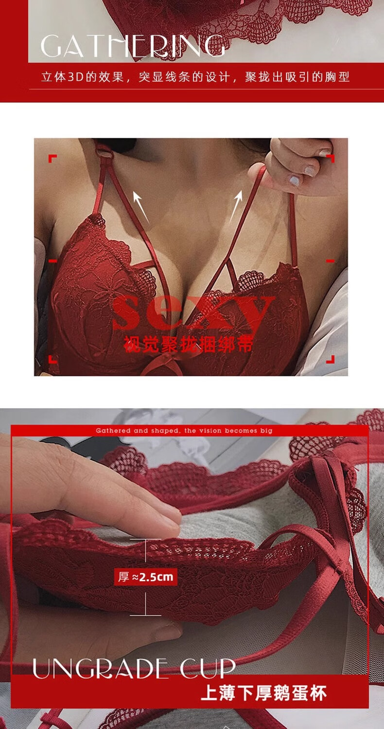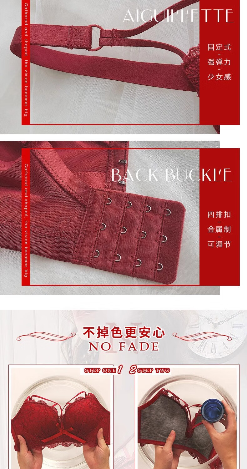 Aimu Qiuxia brand bra set for wedding brides in the year of their birth year, sexy red underwear for women with small breasts push-up adjustment, red set 38/85B