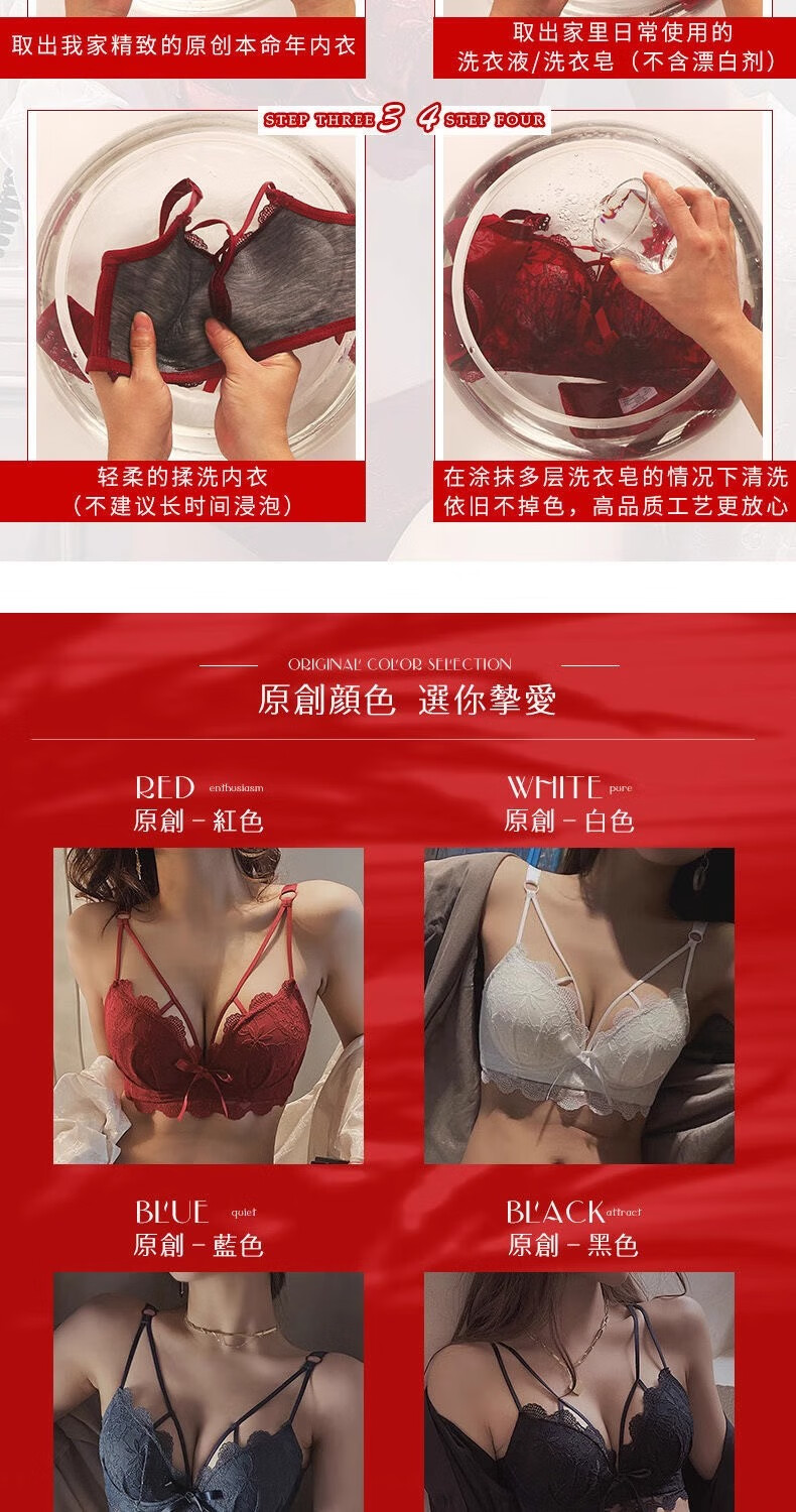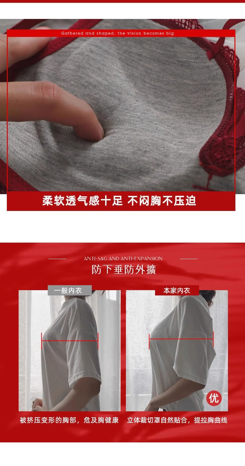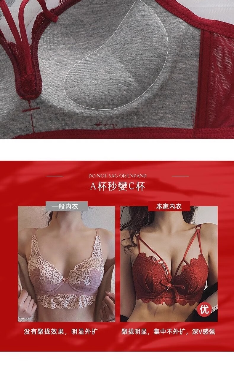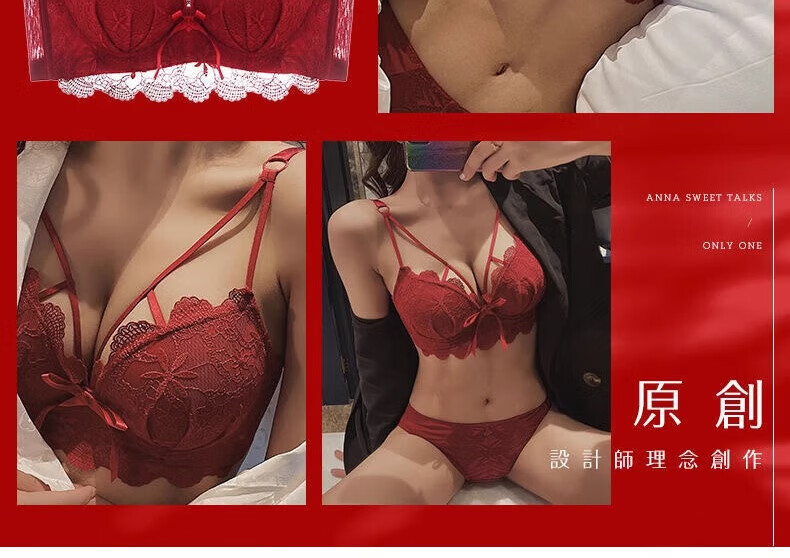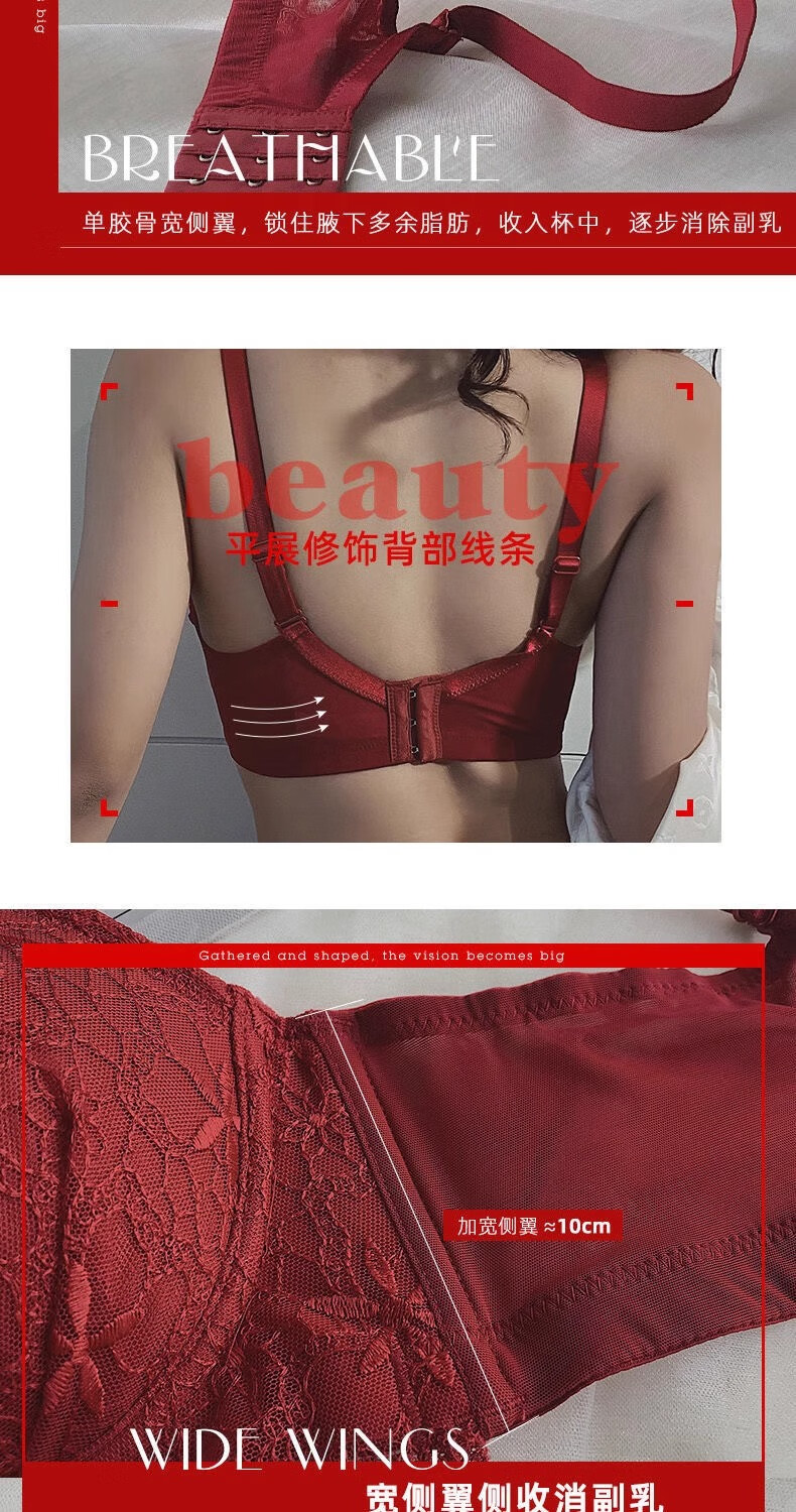Aimu Qiuxia brand bra set for wedding brides in the year of their birth year, sexy red underwear for women with small breasts push-up adjustment, red set 38/85B