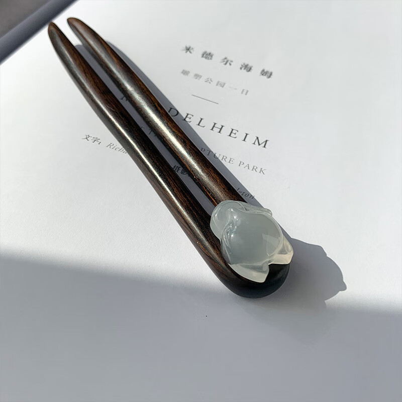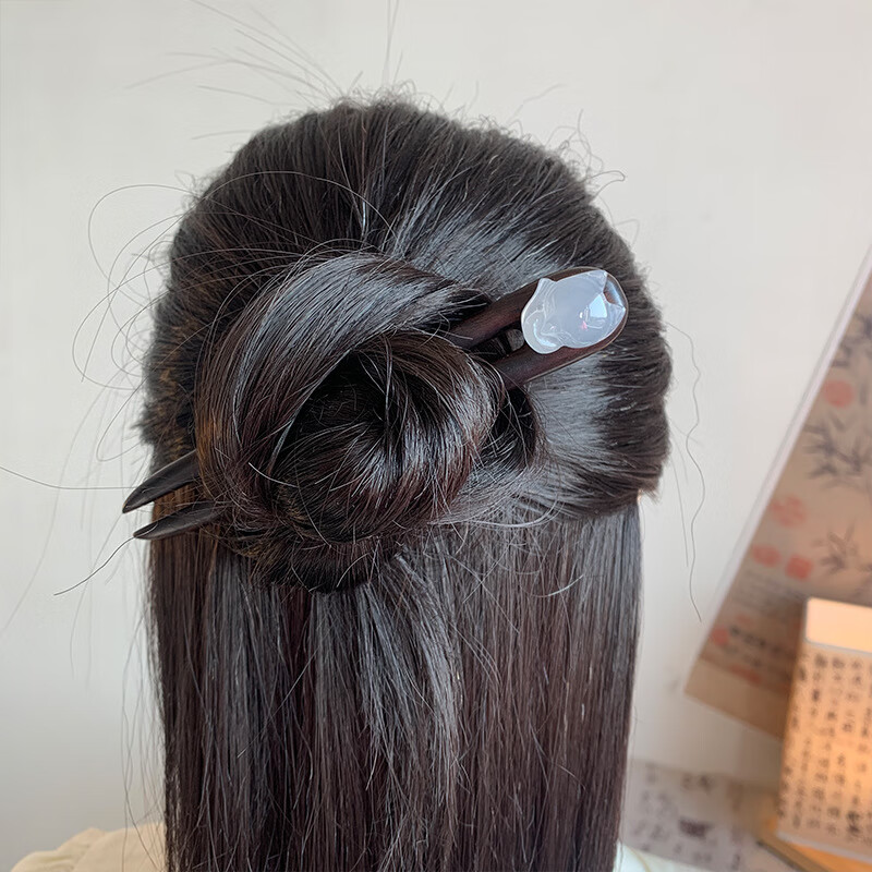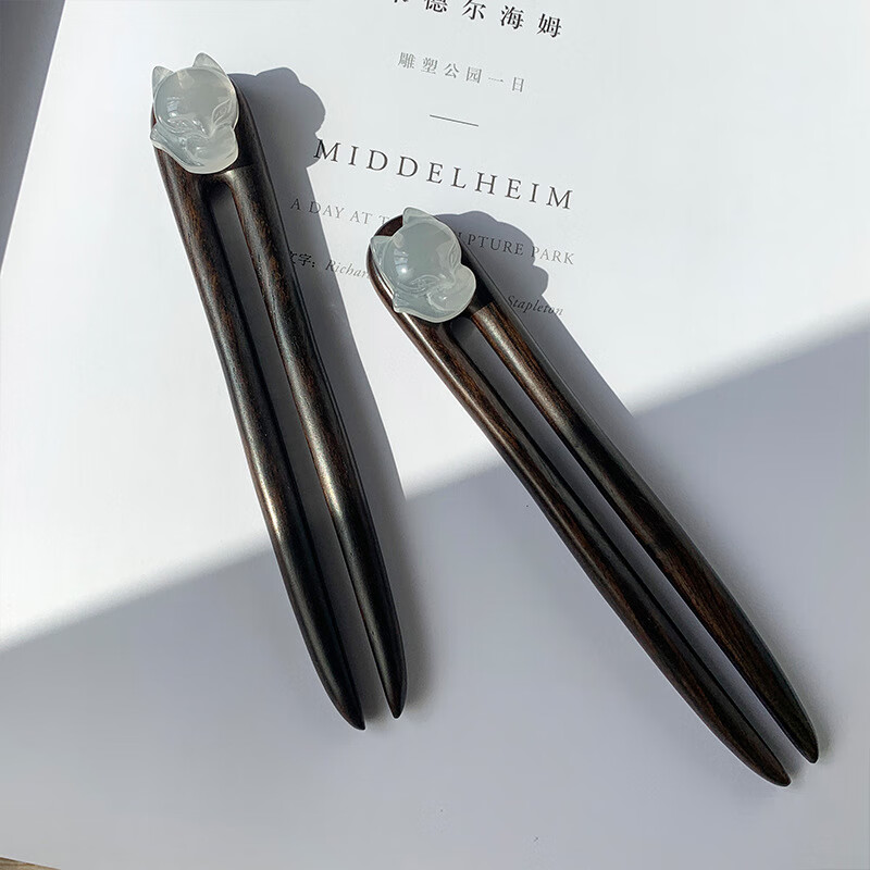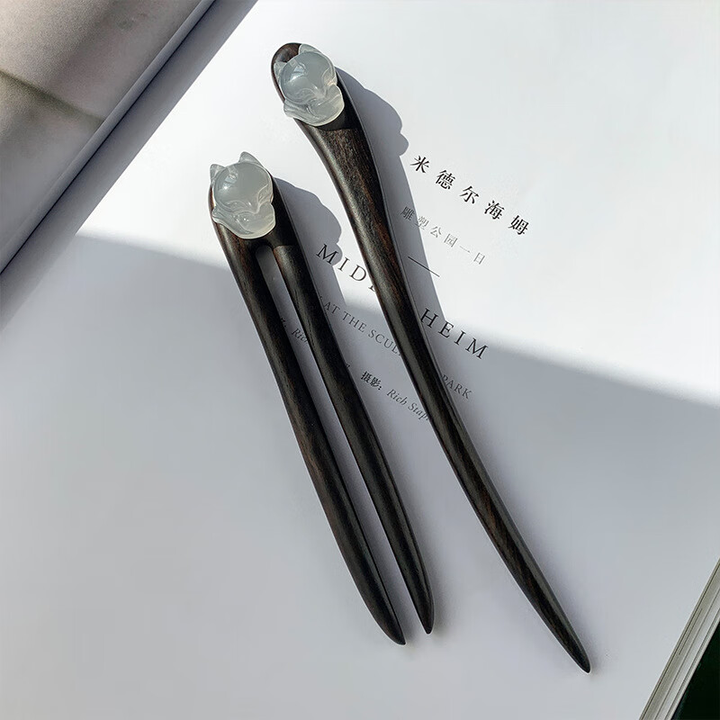Han Penesi white jade little fox U-shaped ebony hairpin short classic temperament summer gift for girls daily white jade little fox U-shaped hairpin ebony
