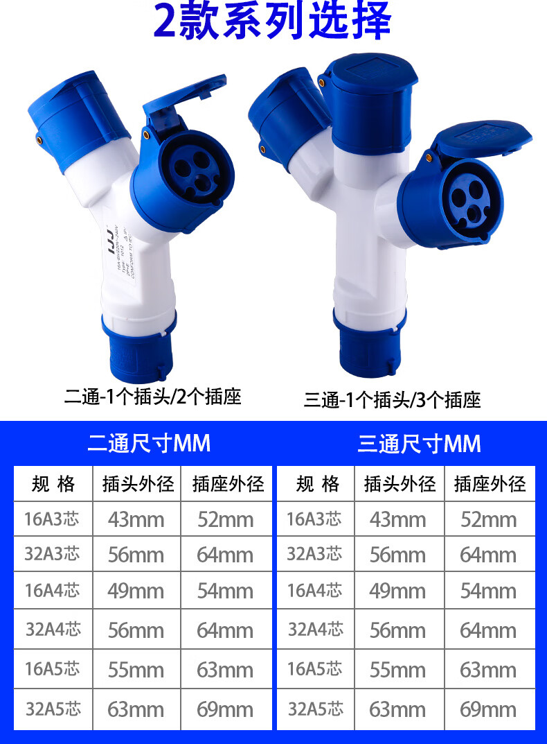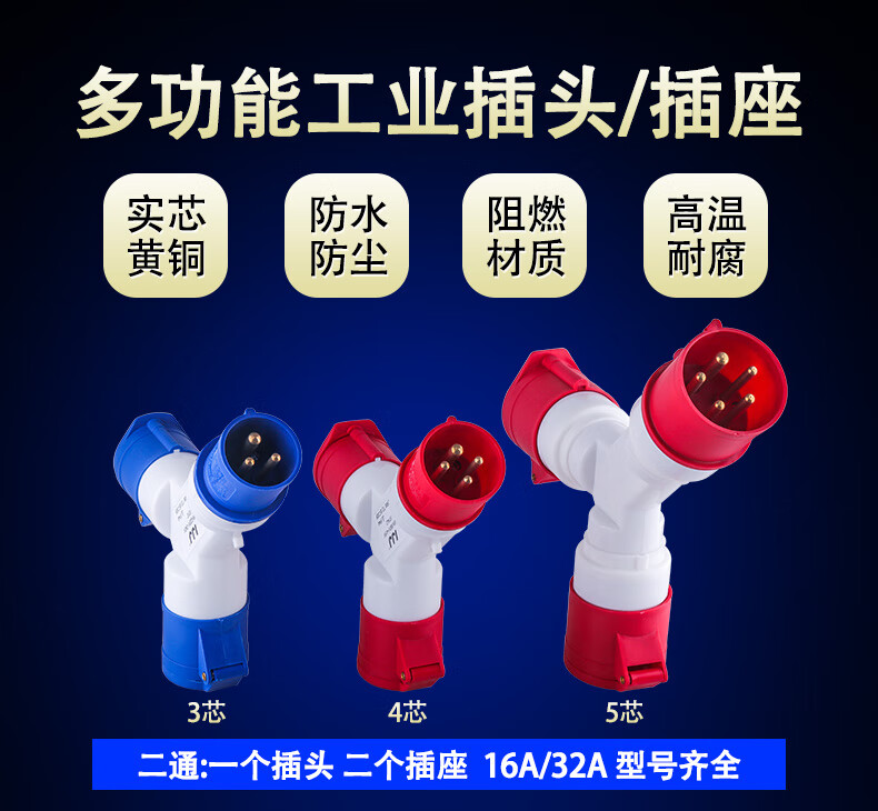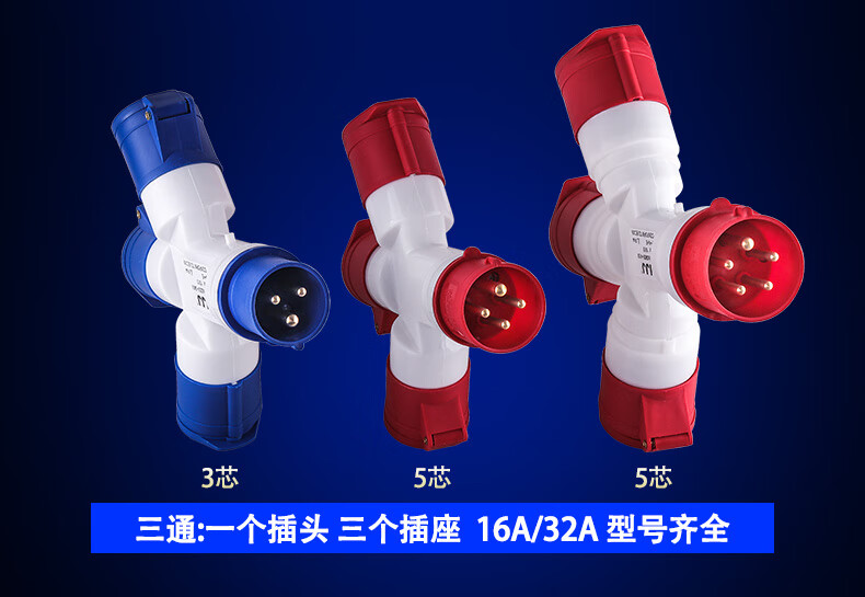 Industrial plug Y-type multi-functional three-way branch socket waterproof and explosion-proof 220v380 three-phase core four holes 32A16a 1013 (1 minute 3 socket 16A 3 holes)