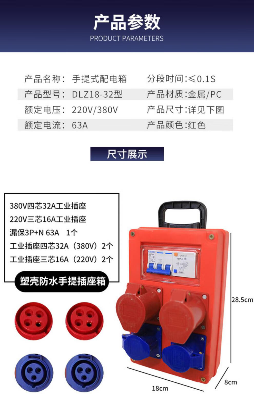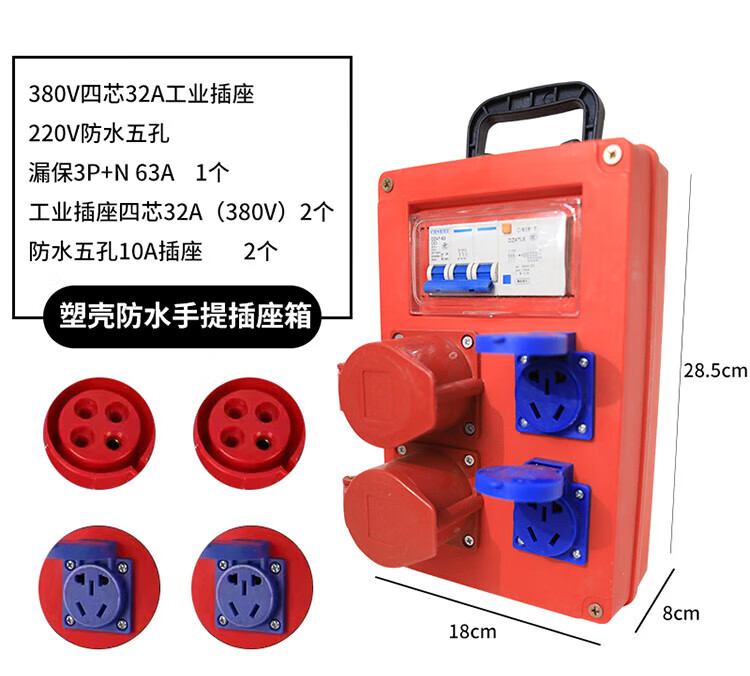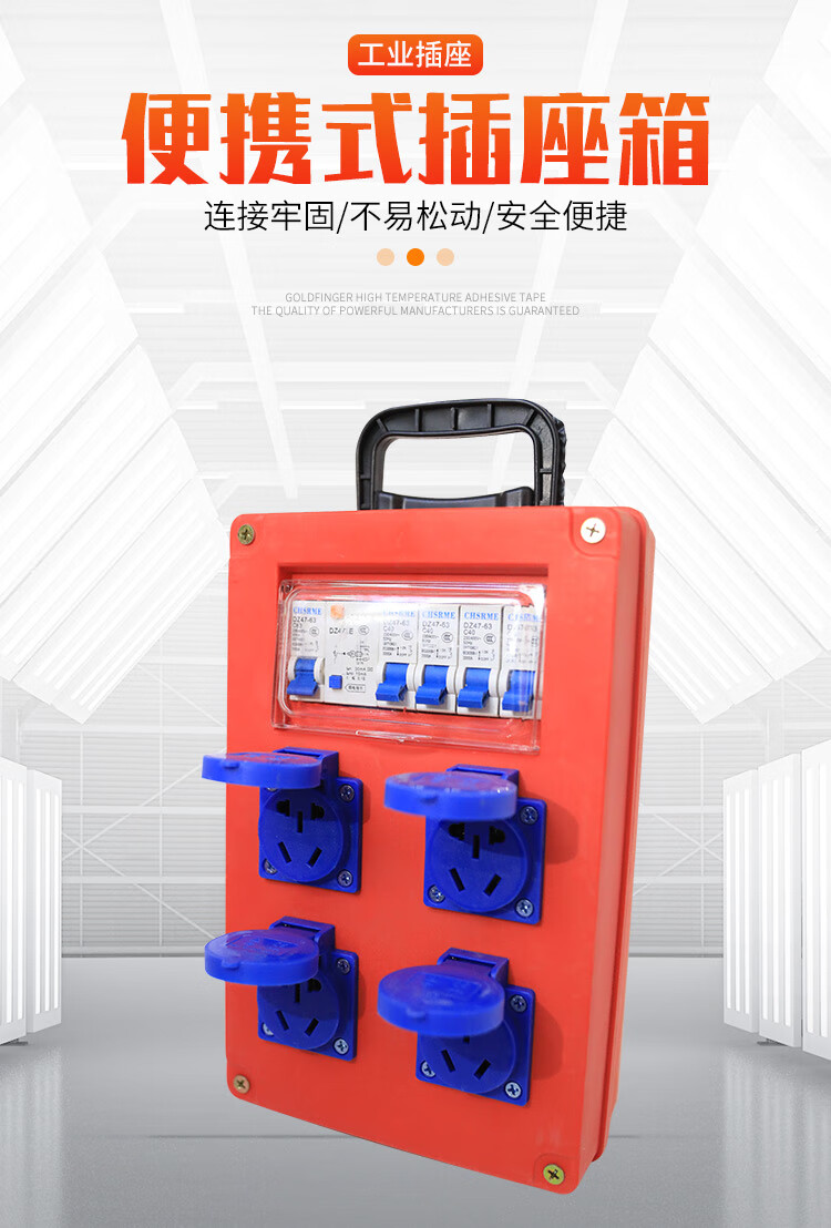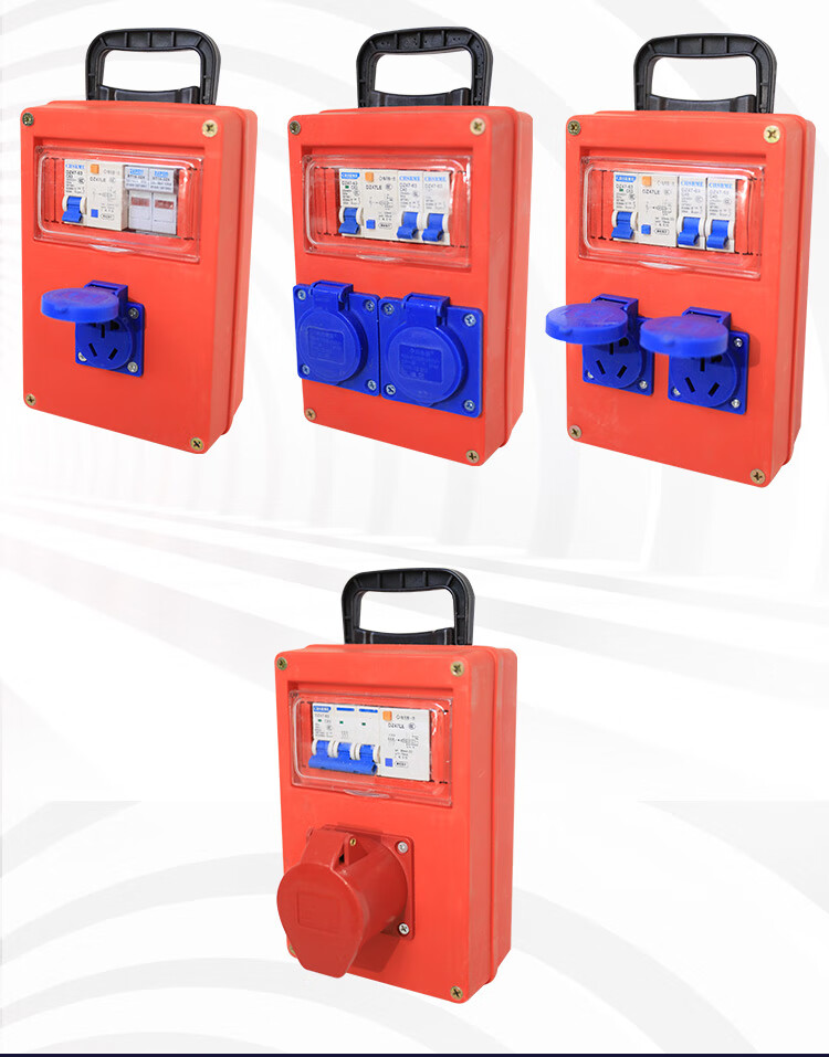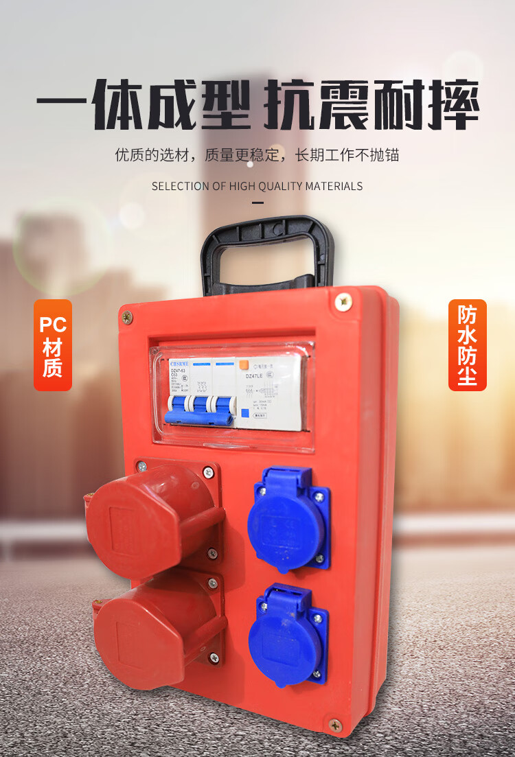 Portable electrical box, mobile waterproof industrial socket box, leakage protection, outdoor maintenance box with fuse, construction site level three box, one industrial socket 3*16A (fuse)