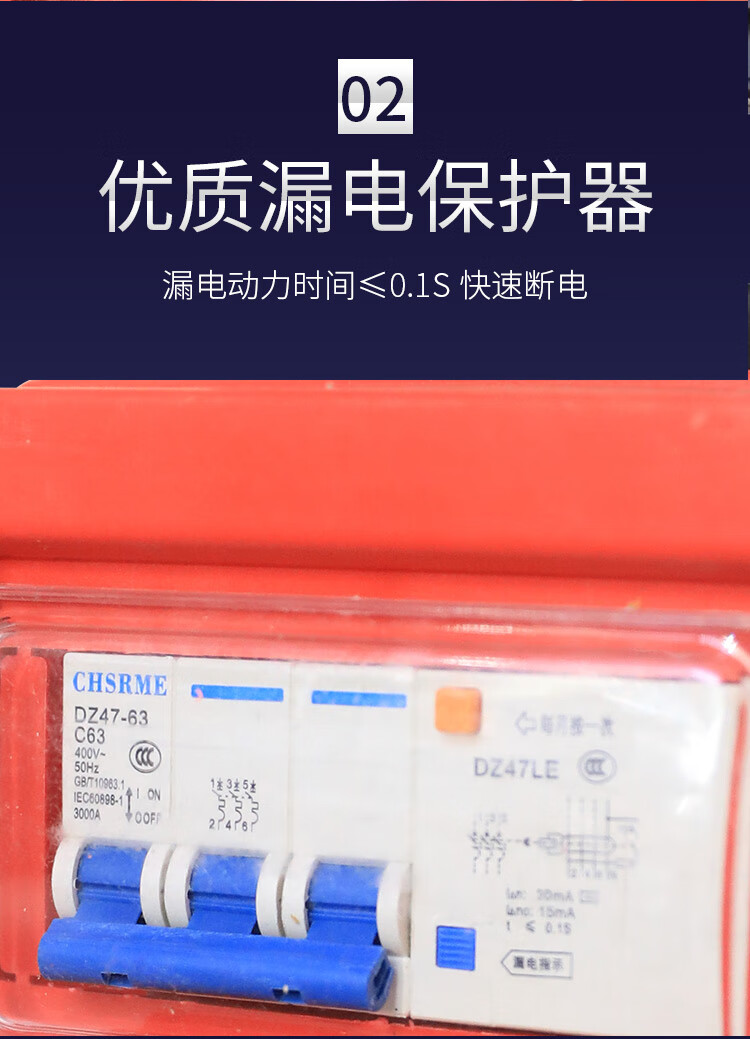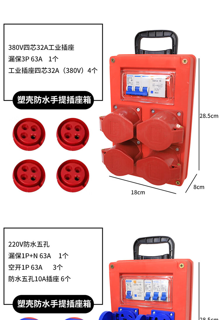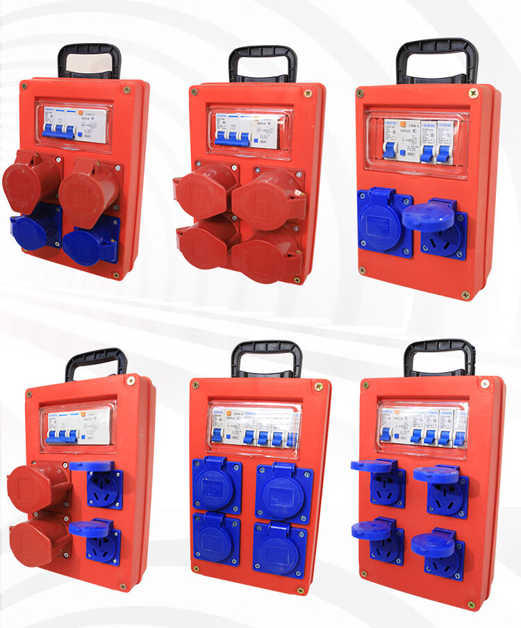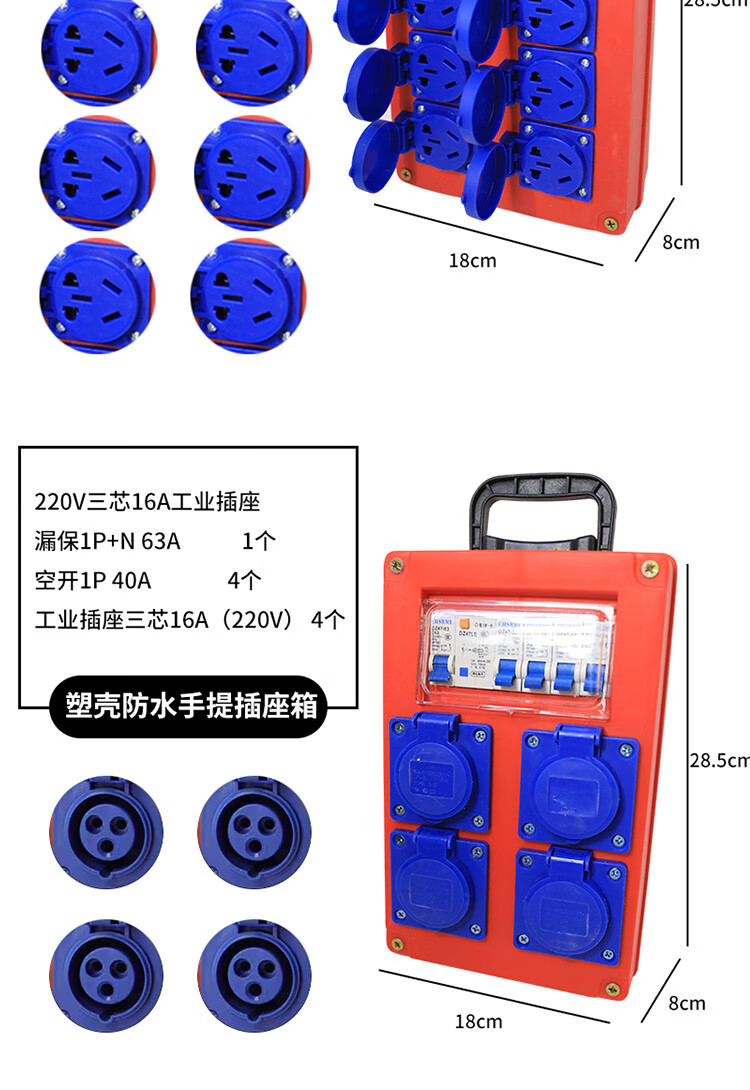 Portable electrical box, mobile waterproof industrial socket box, leakage protection, outdoor maintenance box with fuse, construction site level three box, one industrial socket 3*16A (fuse)