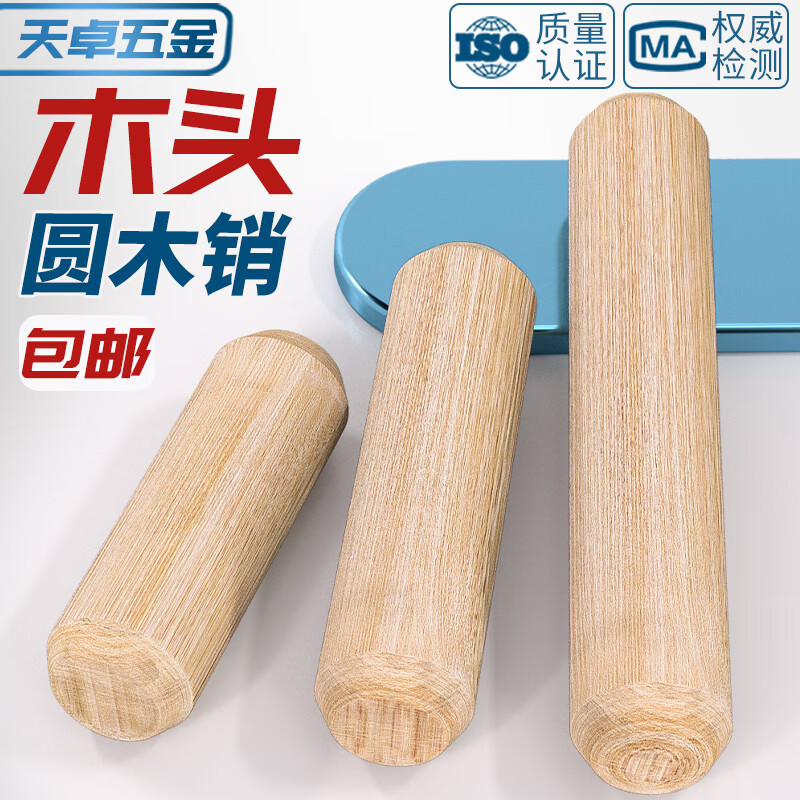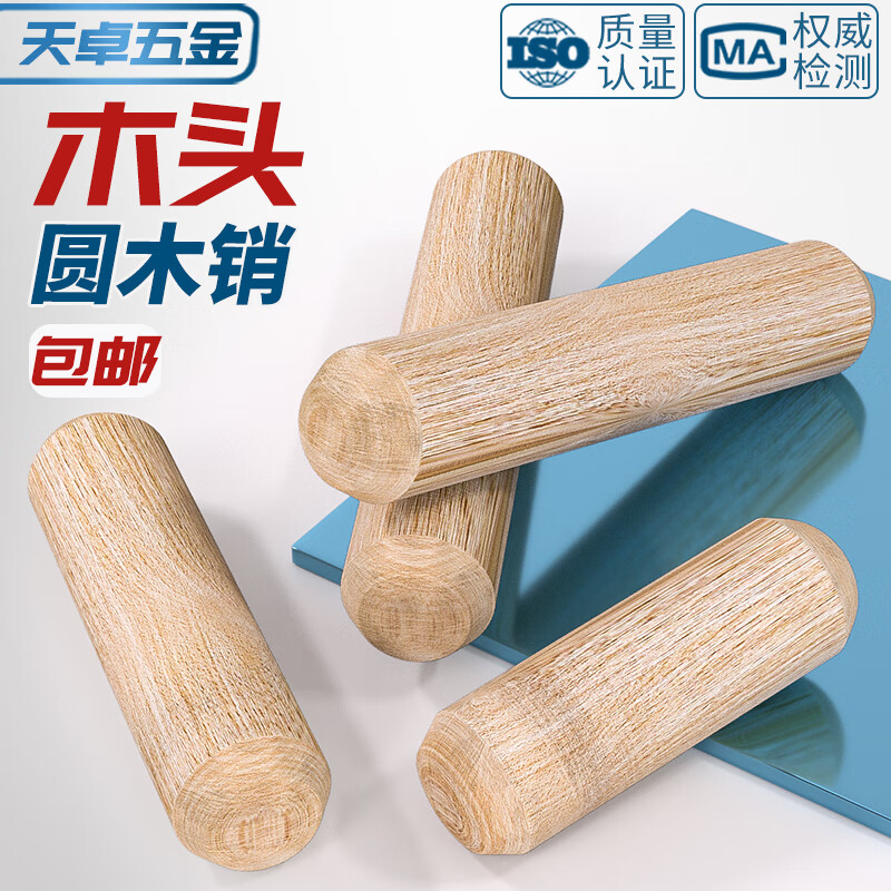 Tianzhuo Hardware round wood plug wooden rod solid wood pin expansion plug wooden tip wooden tenon rod twill wood nail wedge cabinet board connector M10*50-100 pieces