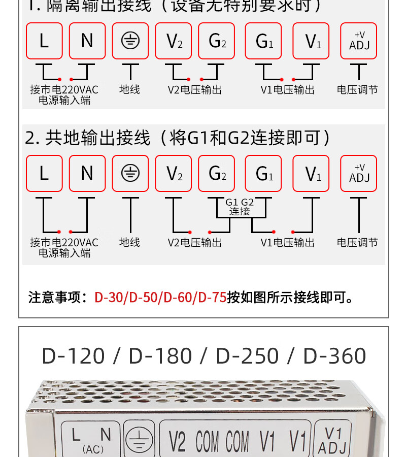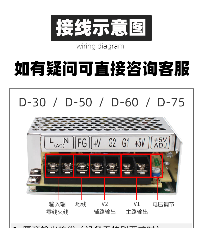 Dual output switching power supply positive and negative 5V12V DC 220 to 24V dual group two circuits D-30A50B60C100W D-30 series (power 30W) output voltage 5V24V