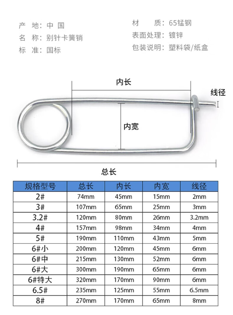Tianzhuo Hardware galvanized pin snap spring pin spring pin pin pin split pin safety pin insurance pin M2M3M4M5M6M8mm 3#3 110 5 pcs