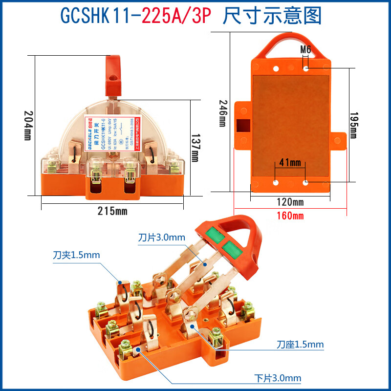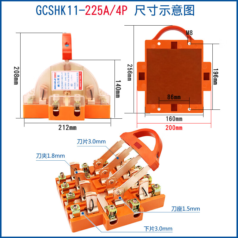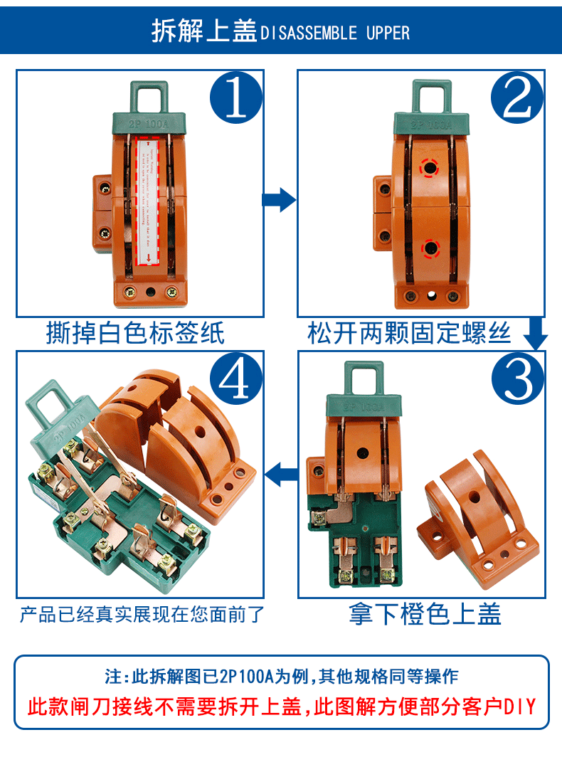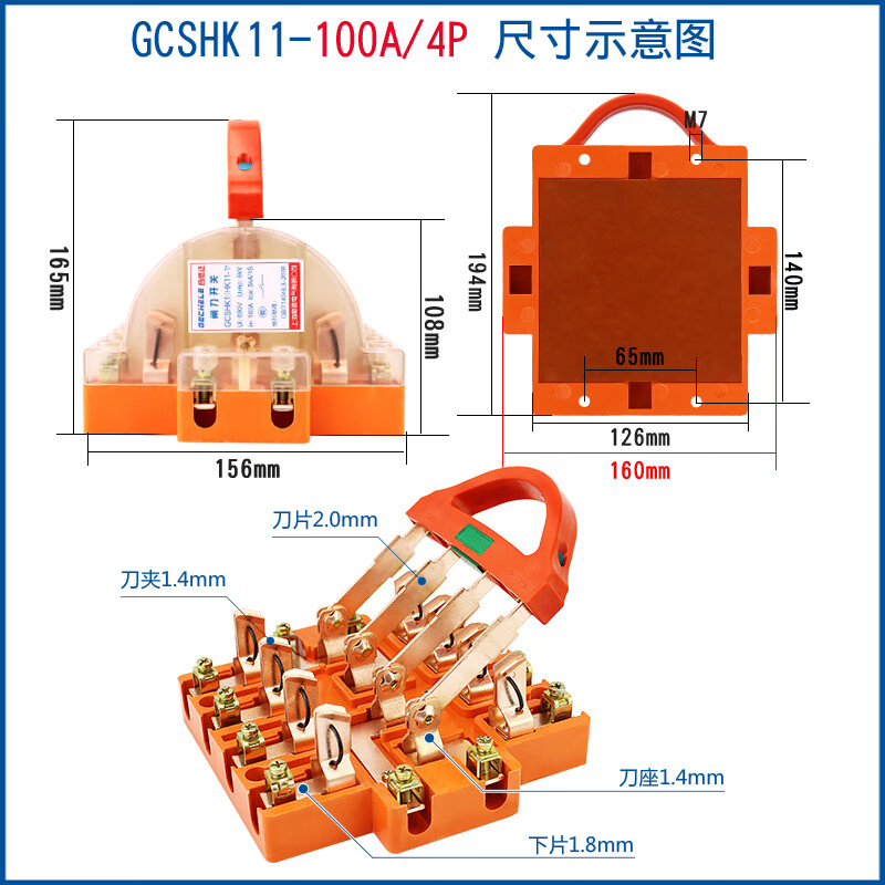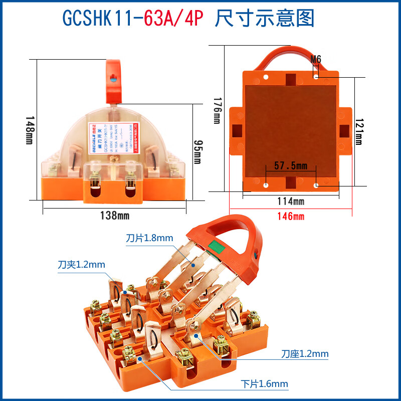 Two-way knife switch 220v double throw double throw 2p dual power conversion electric knife switch with head and reverse knife 2P 63A non-transparent