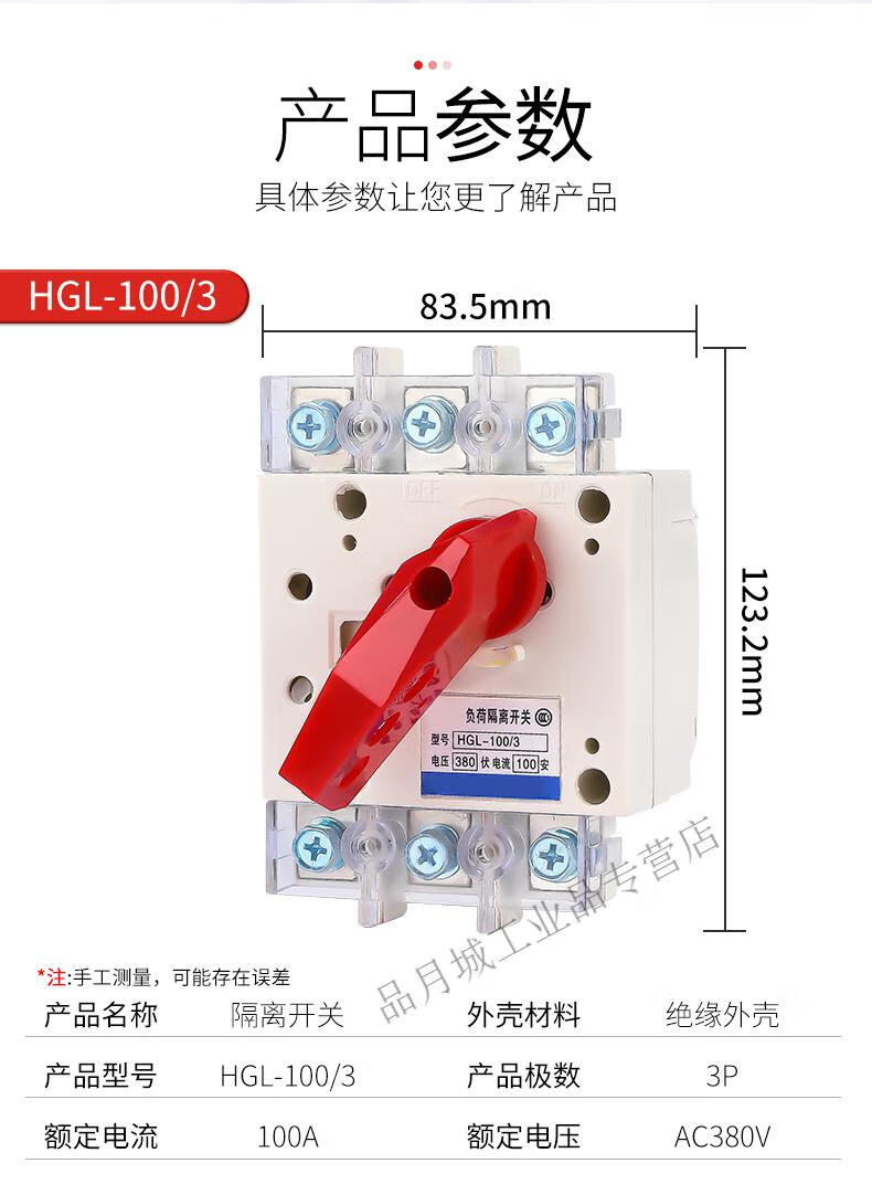 Isolating switch 4P three-phase four-wire load switch HGL100A 160A 250A 400A 630A 63A 3P 250A