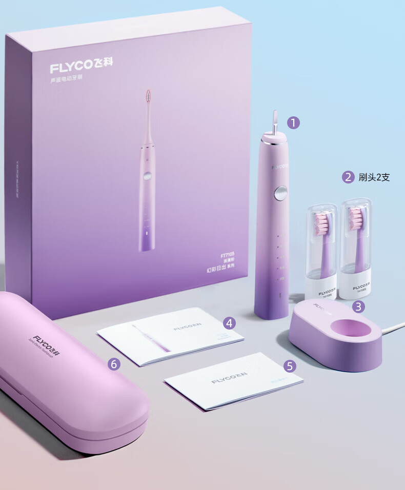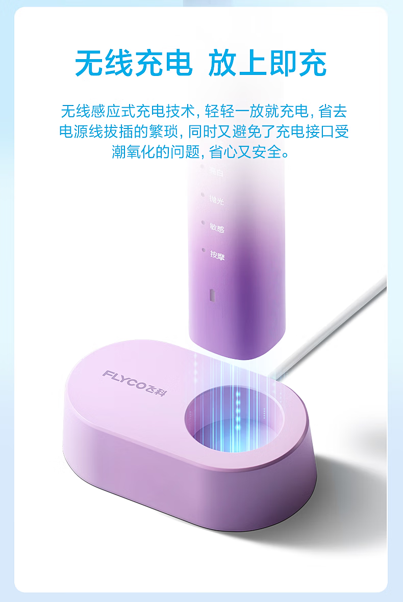 FLYCO electric toothbrush for men and women at home, fully automatic sonic vibration wireless charging couple toothbrush, holiday gift FT7105 deep sea blue with 4 brush heads