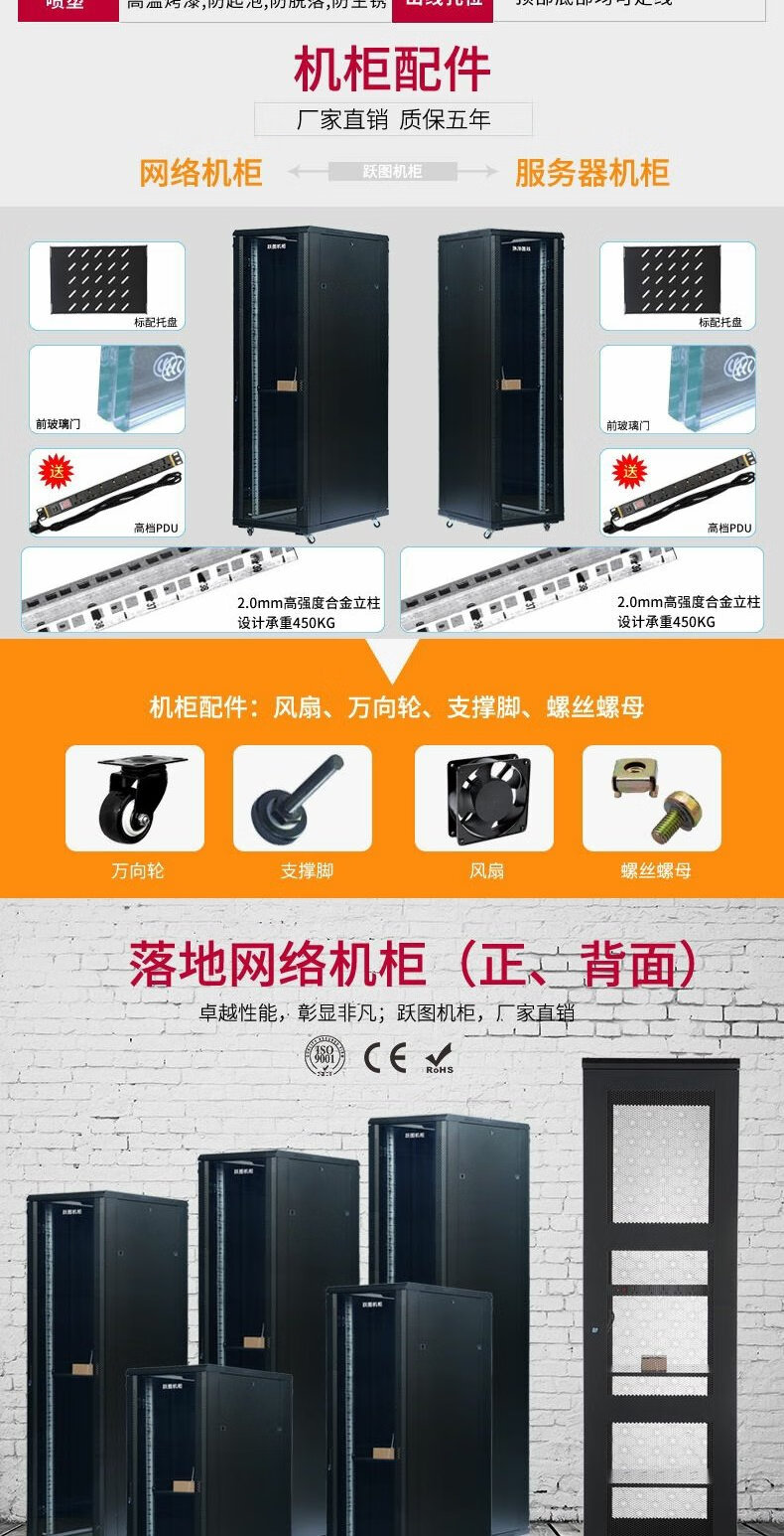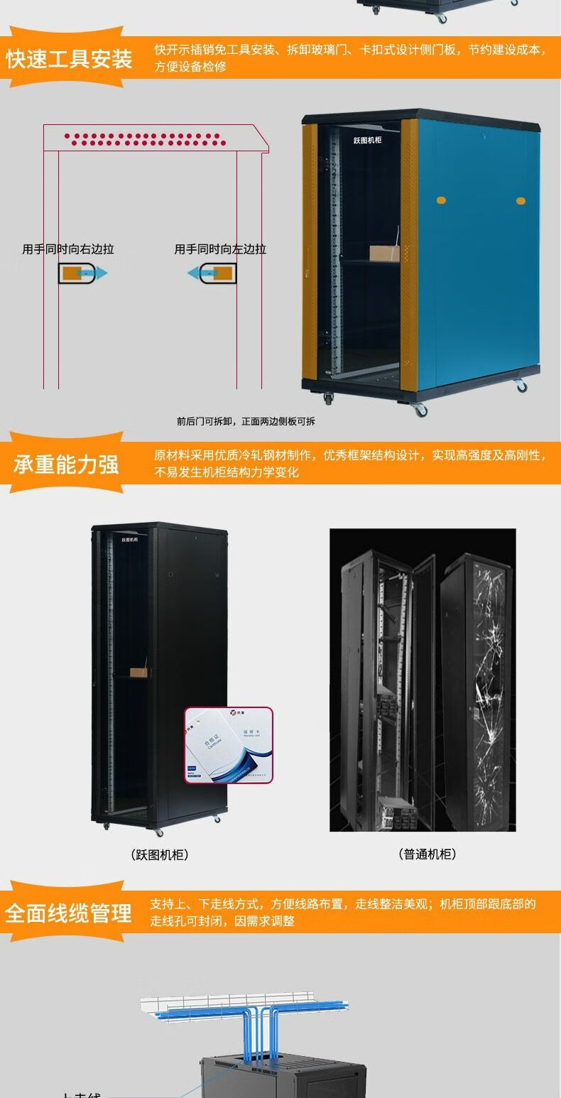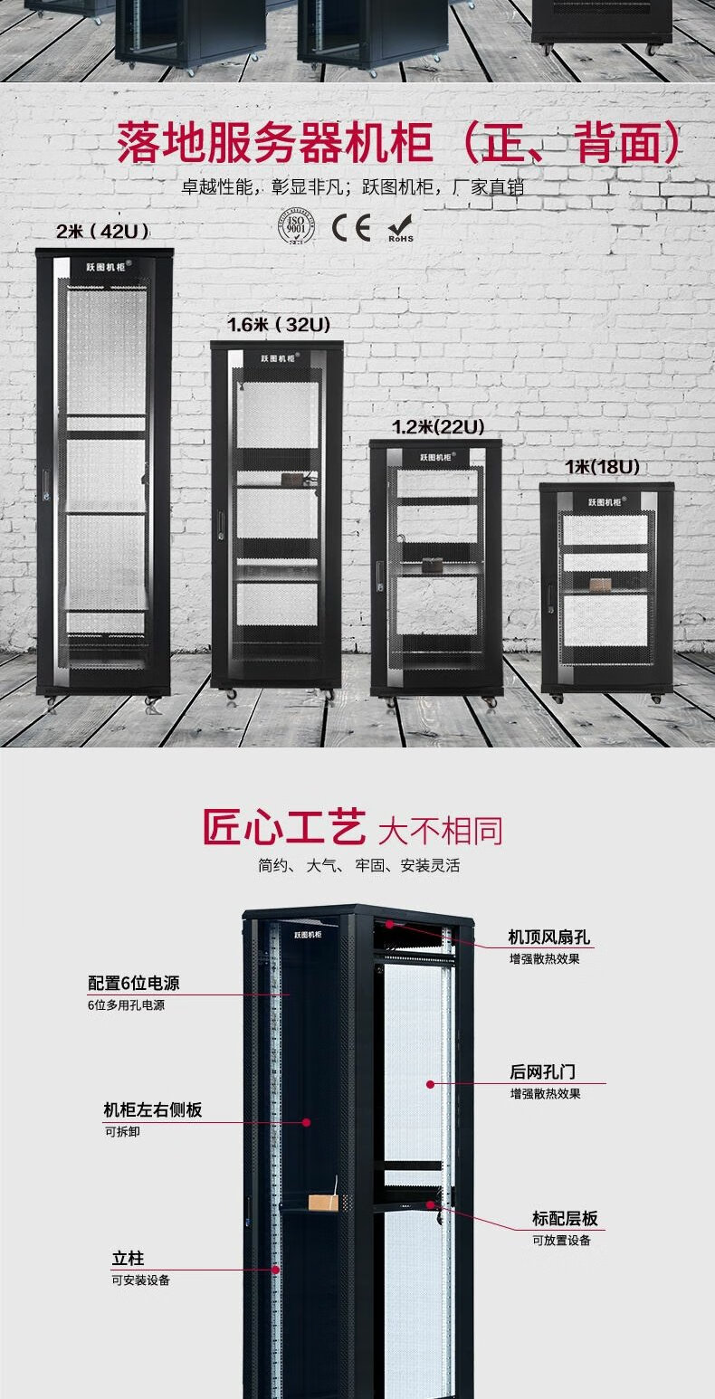 Yuetu 18U22U network cabinet 37U42U server cabinet 19-inch standard cabinet 2 meters 600 wide 800 wall-mounted cabinet 60x60x140cm