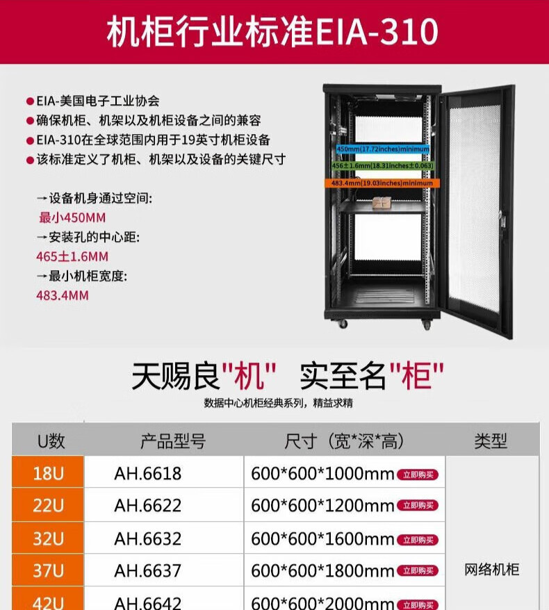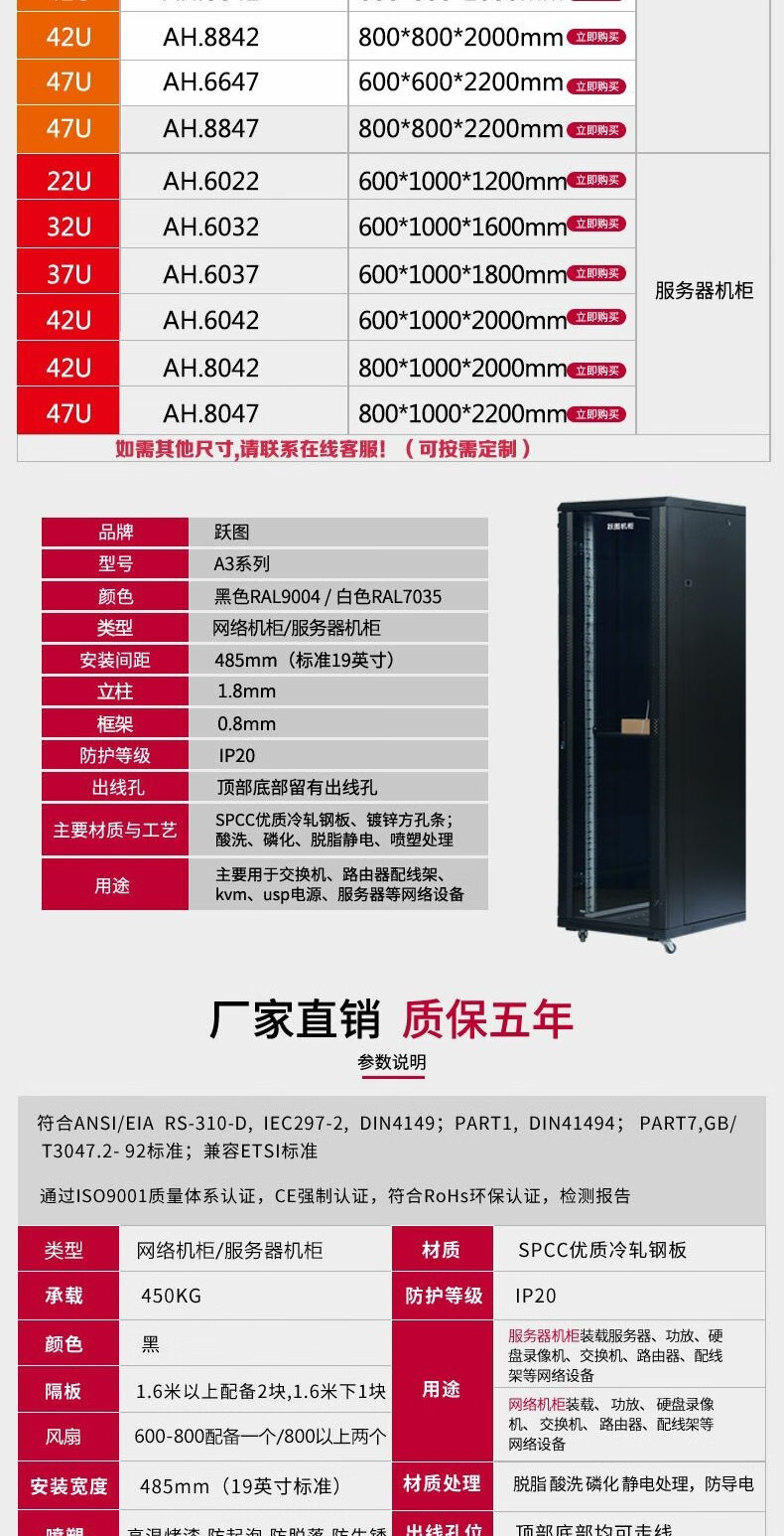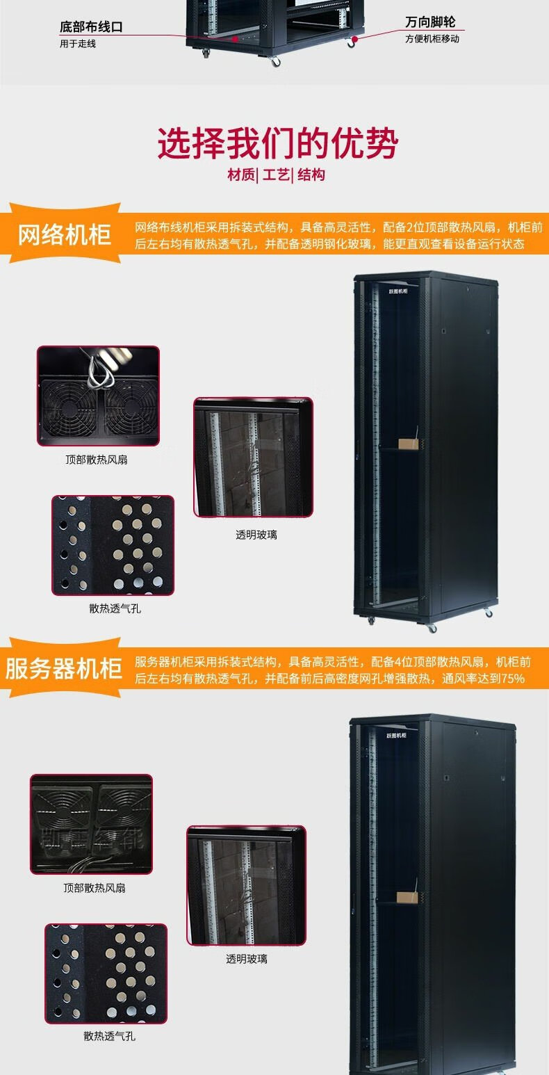 Yuetu 18U22U network cabinet 37U42U server cabinet 19-inch standard cabinet 2 meters 600 wide 800 wall-mounted cabinet 60x60x140cm