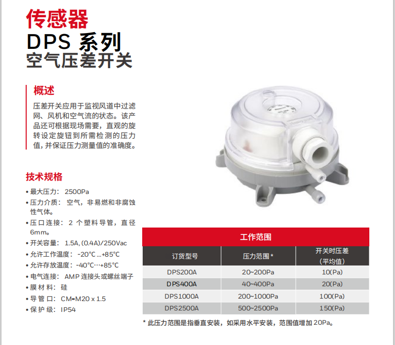 Honeywell fan filter air pressure difference switch DPS200A400A1000ADPSN2500A DPS200A 20-200pa
