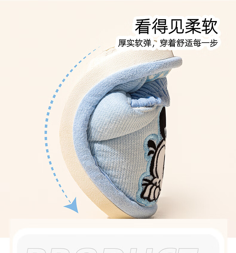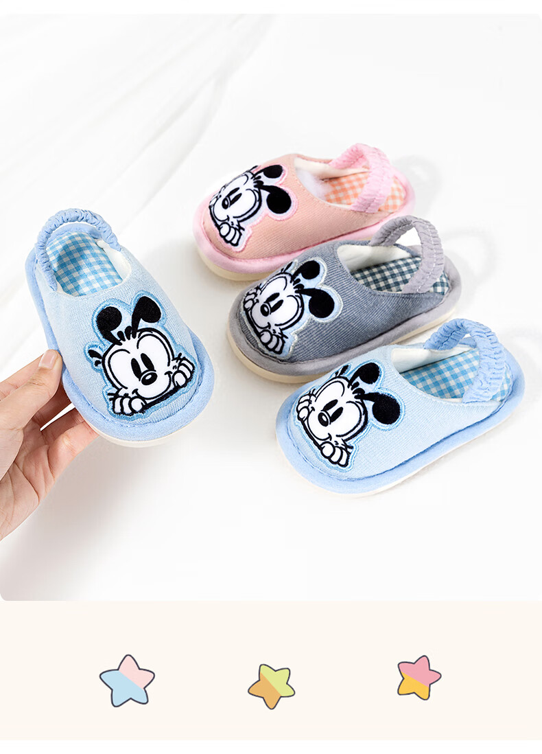 Babudou children's cloth slippers for girls, spring, autumn, indoor and winter, soft bottom, toddlers, boys, 2 years old and 3 boys, anti-slip cotton slippers, blue 16, inner length 16cm