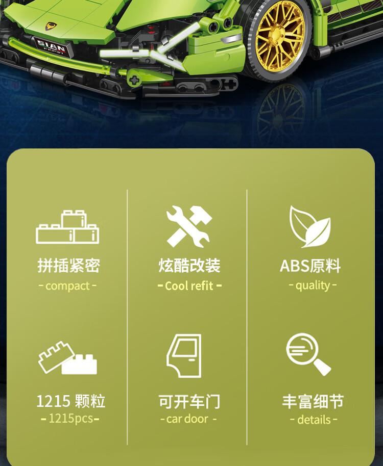 Jiqile is compatible with LEGO 2025 new children's building block toys adult car model assembled racing Lamborghini boy perfect version 1 14 Lamborghini + remote control light