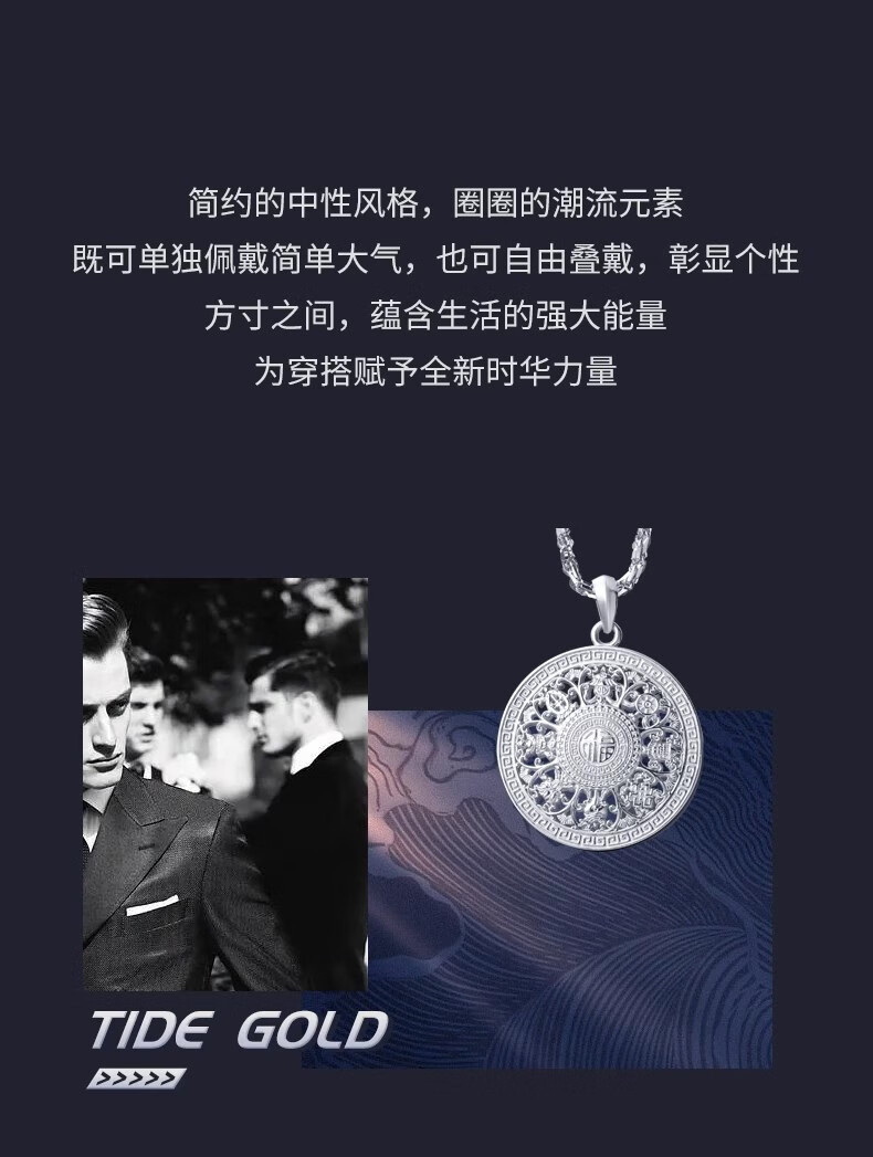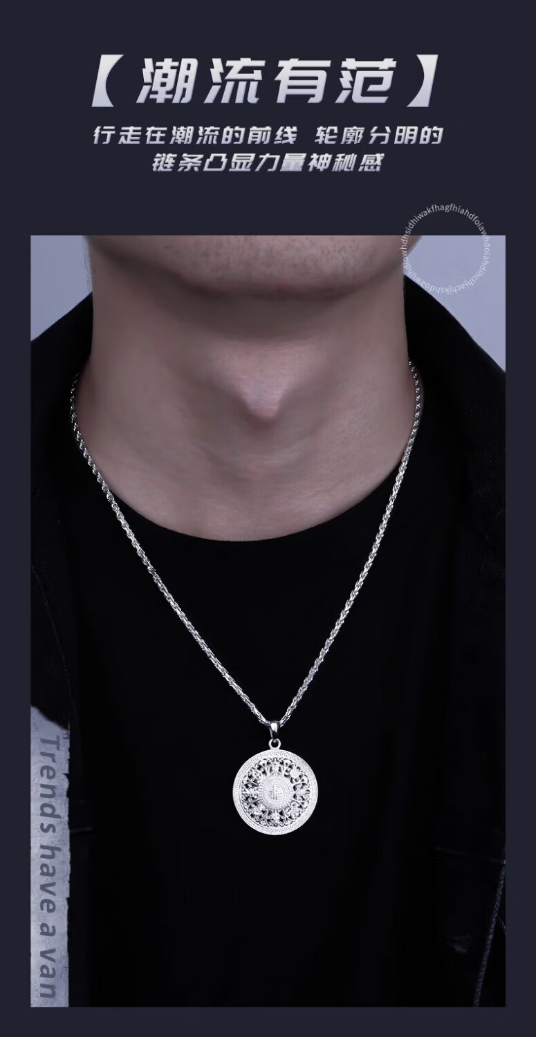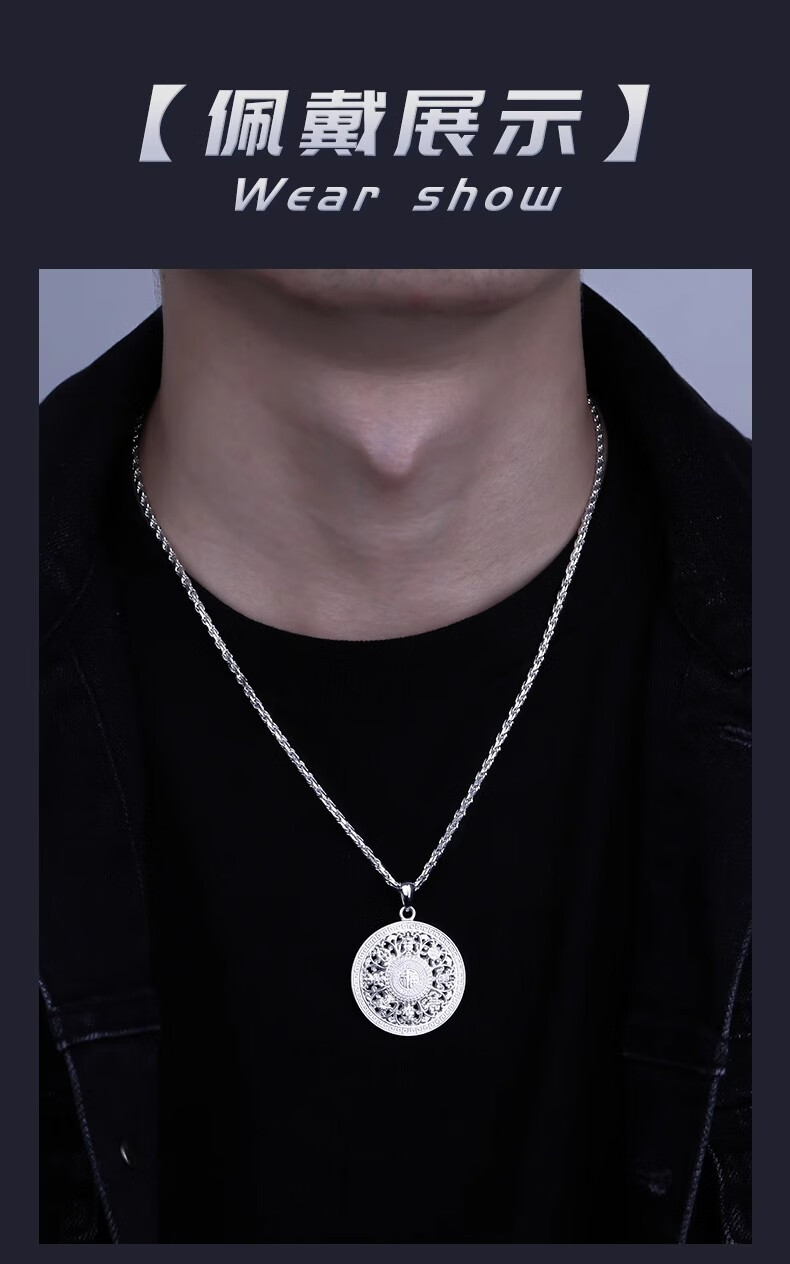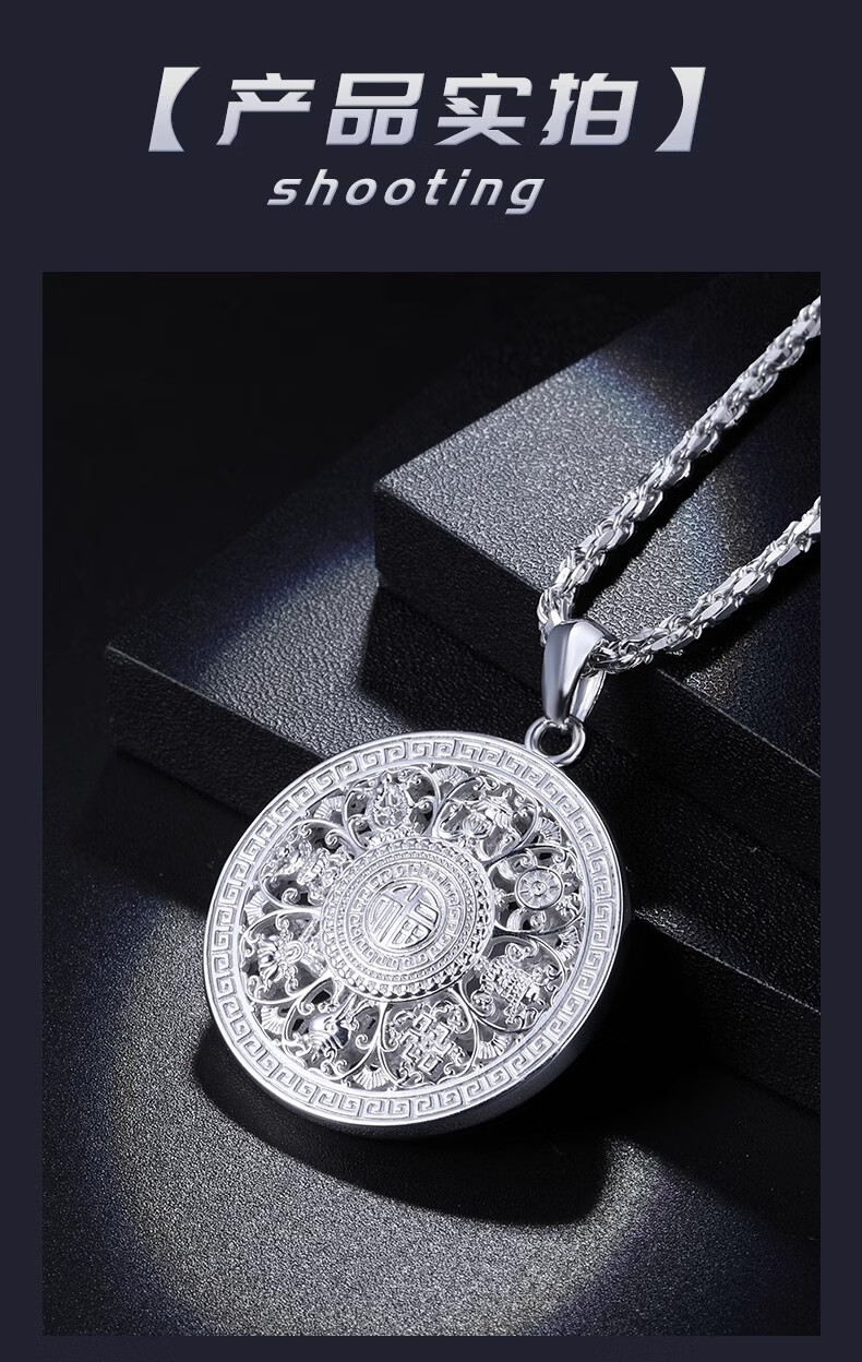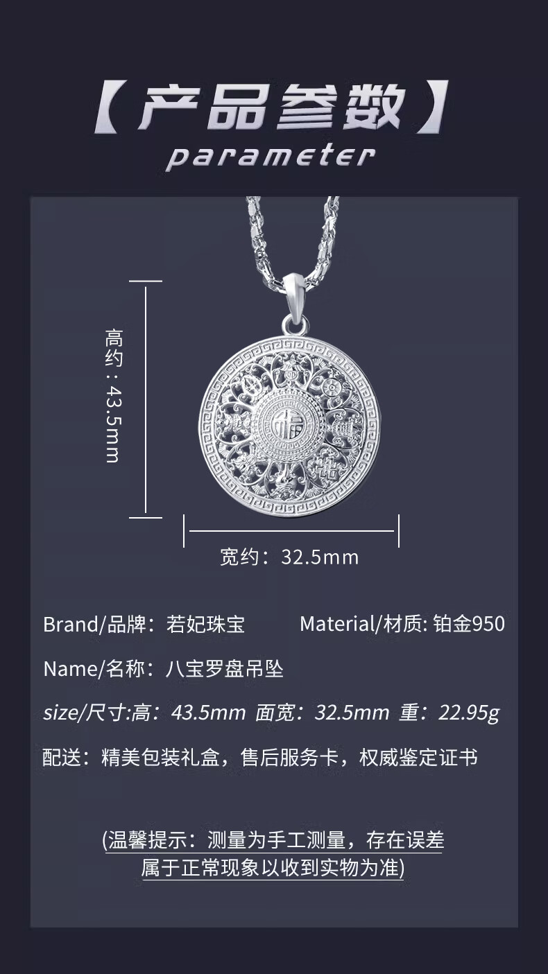 Ruofei platinum pendant for men pt950 men's platinum pendant can rotate eight treasures compass pendant platinum necklace for men platinum eight treasures compass pendant 22-23 grams