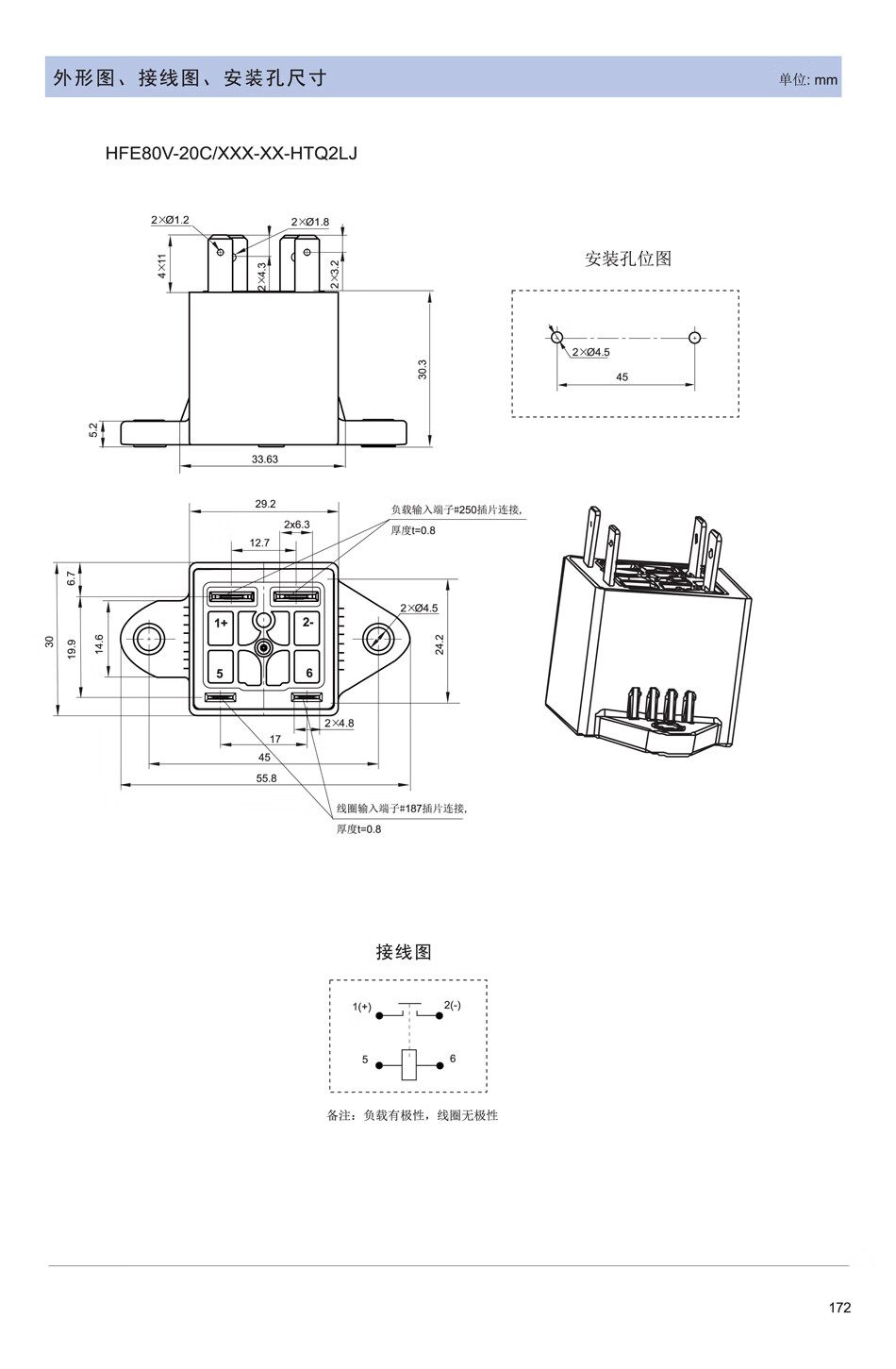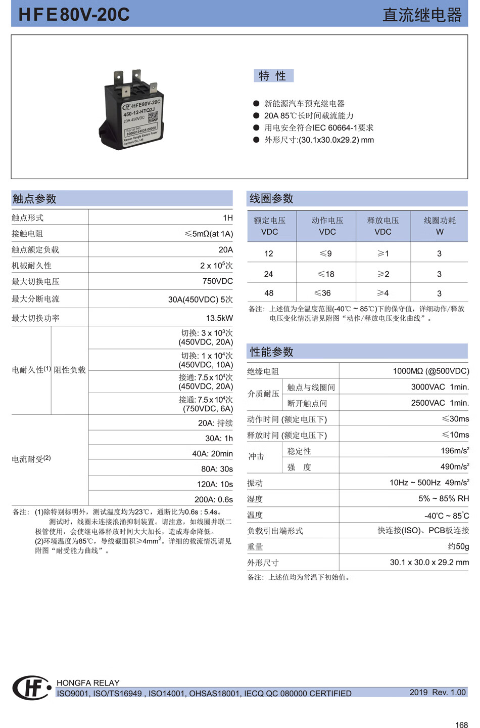 HFE80V-20C 20D/450-12 24 48-HTQ2J PAJ Hongfa high voltage DC relay contactor HFE80V-20C/450-12-HTQ2J line