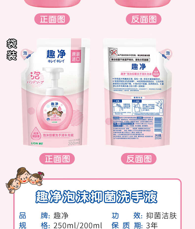 Lion Qujing Foaming Hand Sanitizer 99.9% Antibacterial and Moisturizing for Children and Adults Original Imported Hand Sanitizer Toning Fragrance + Lemon Fragrance 200ml Total 6 Bags
