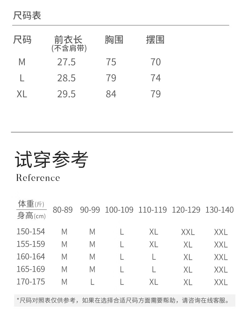 China (cm) 160-165/84-86 165-170 / 88-90 167-172 / 92-96 168-173 / 98-102 170-176 / 106-110