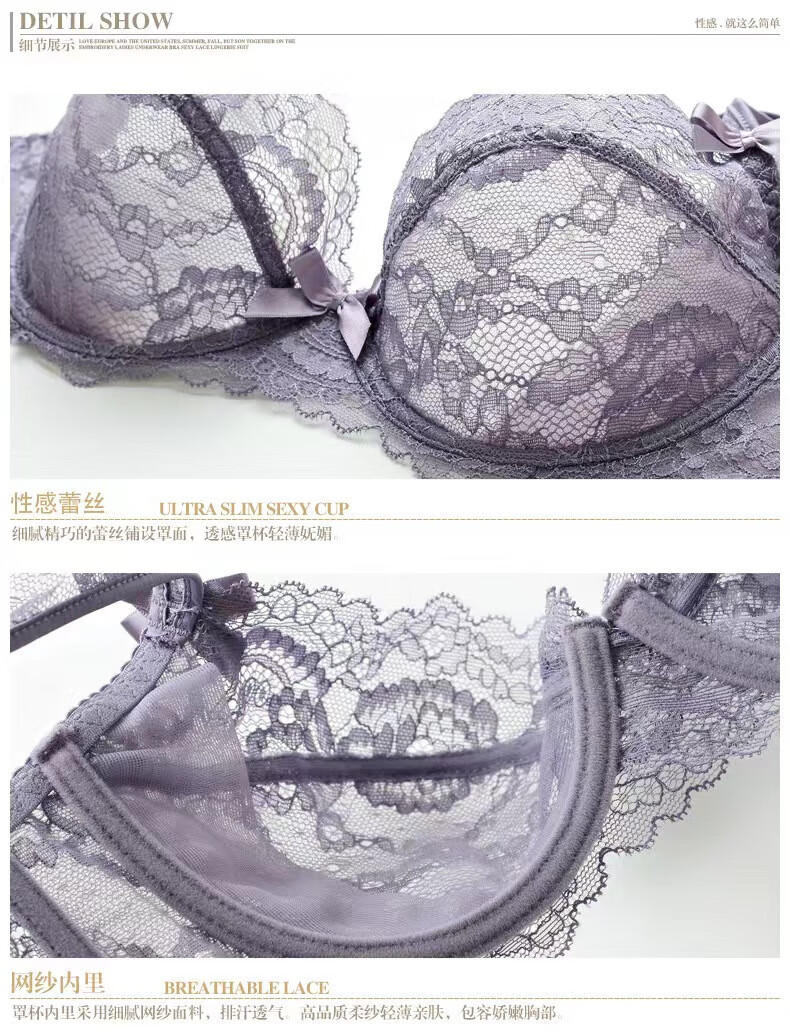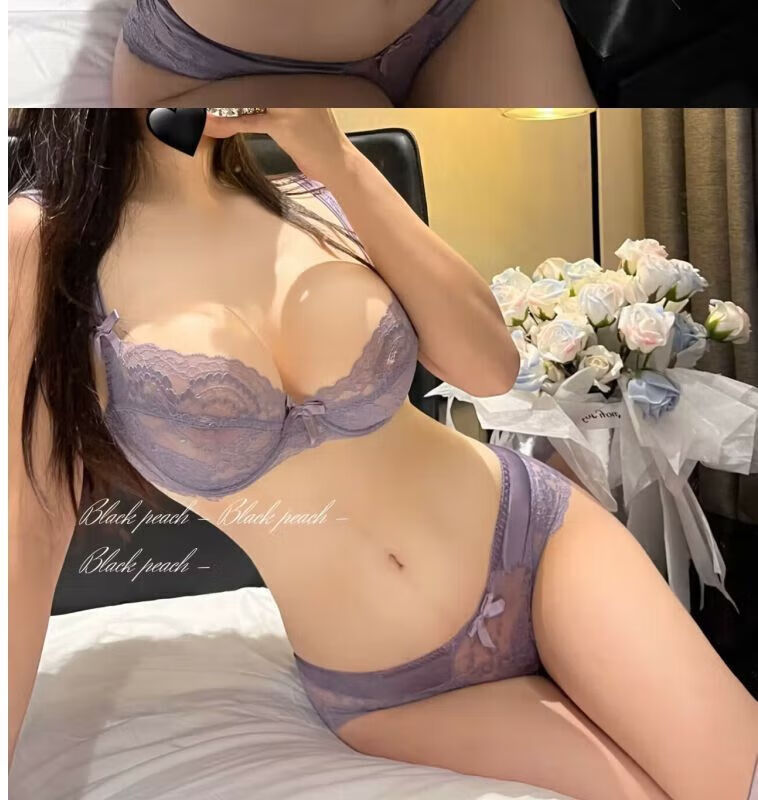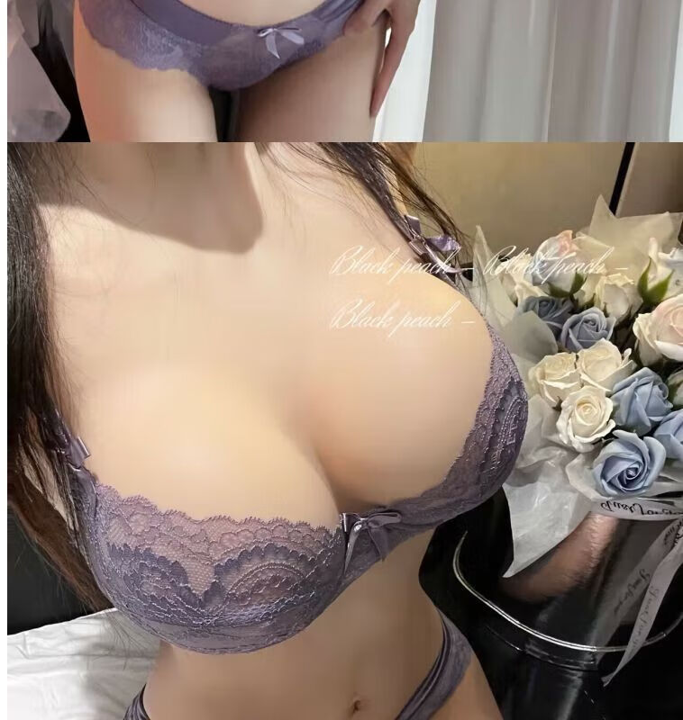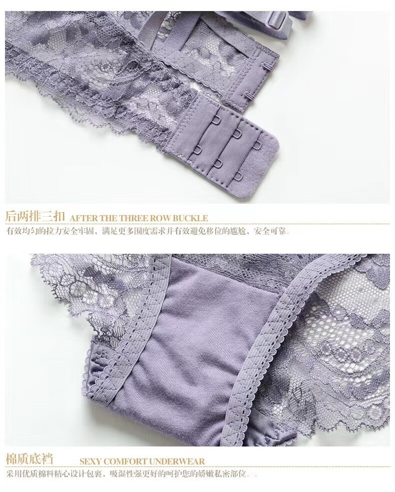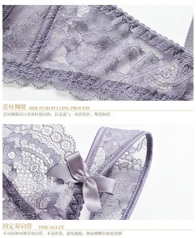 Modal Pure Desire Lace Sexy Underwear Women's Suit Push Up Secondary Breast Ultra Thin Zodiac Year Red Transparent Beautiful Back Bra Purple Suit (Underwear Gift Box) 75B (34) Small Breast Push Up