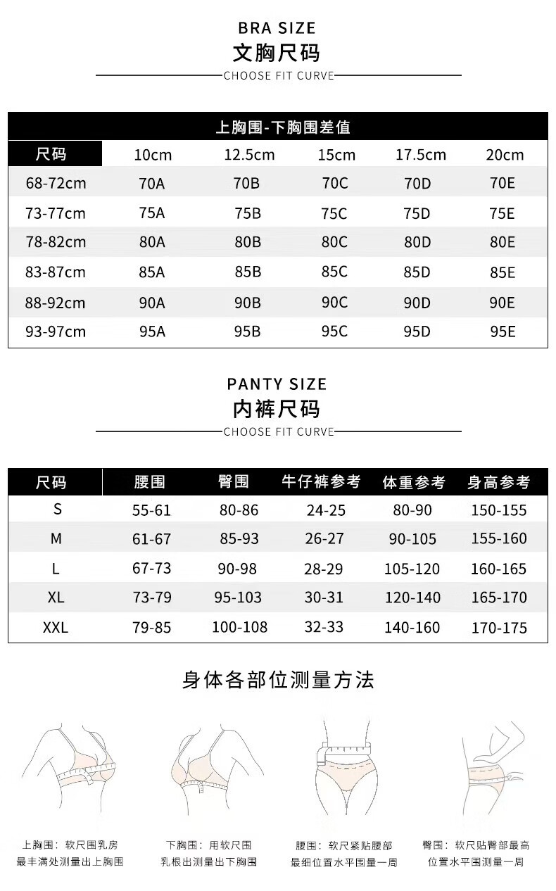 China (cm) 160-165/84-86 165-170 / 88-90 167-172 / 92-96 168-173 / 98-102 170-176 / 106-110