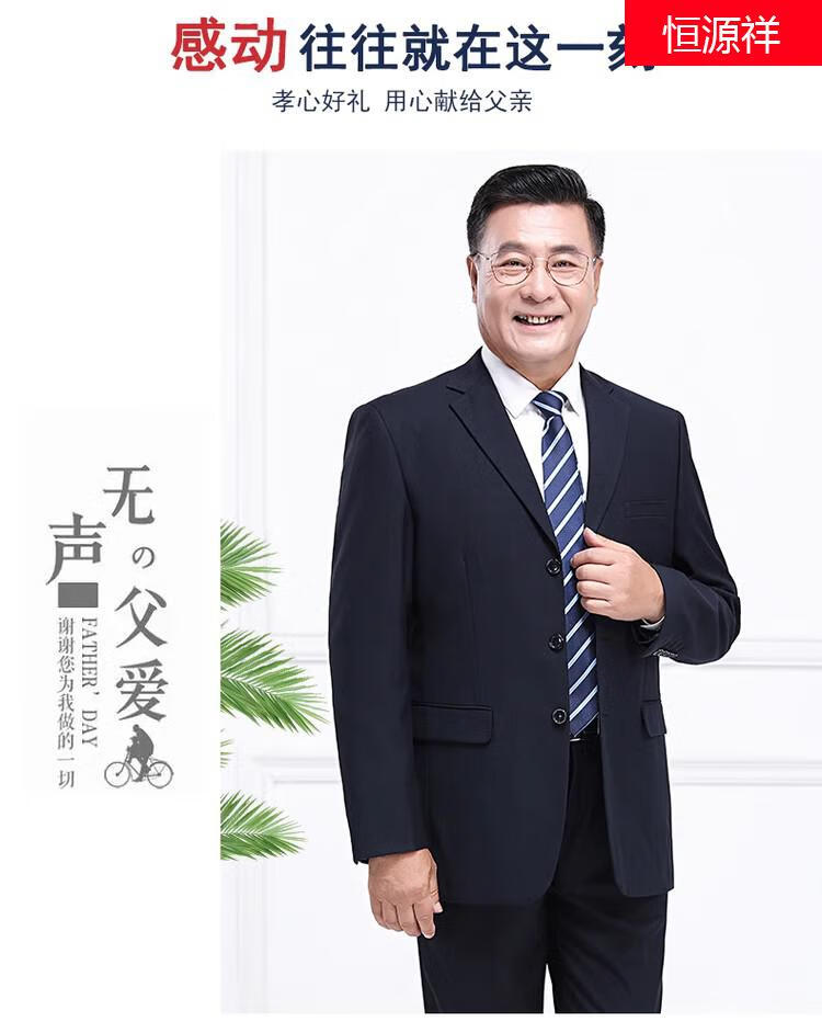 Hengyuanxiang autumn middle-aged and elderly suit men's three-button loose business casual navy suit dad wedding dress three-button navy-single suit top 180 (XXL) recommended 145-155 Jin Jin equals 0.5 kg to wear