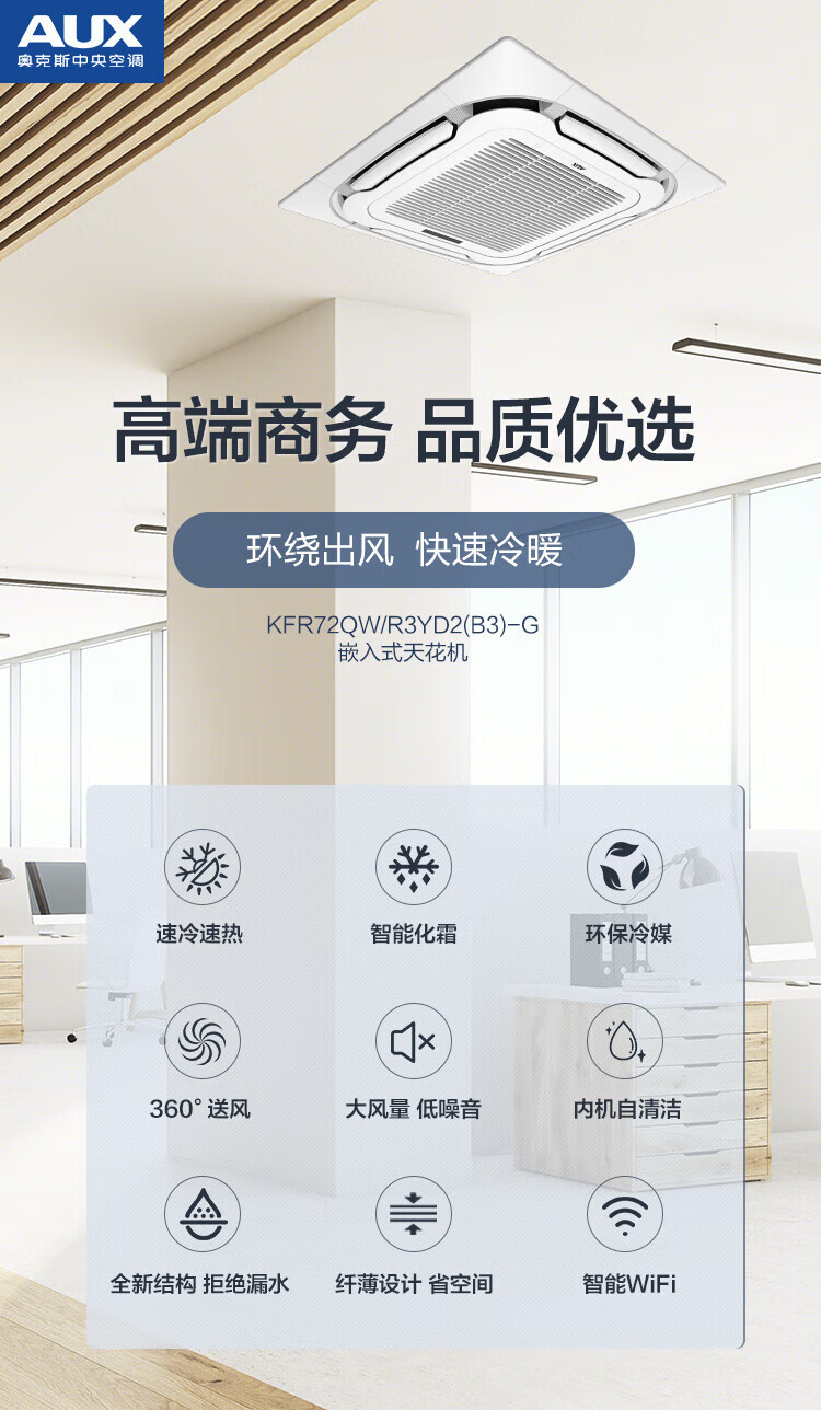 AUX commercial central air conditioner large 3 HP 5 HP ceiling unit fixed frequency cooling and heating eight-sided air outlet embedded ceiling ceiling unit air conditioning patio unit second-hand 95 new 3 HP cooling and heating fixed frequency ceiling unit-220V AUX eight sides-not including installation (bare metal)