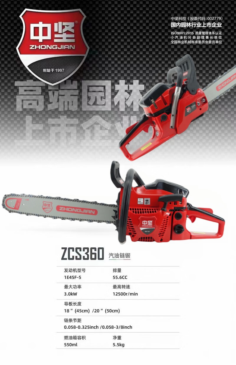Zhongjian Chain Saw, professional grade high-power logging saw model 125, 255, 256, 360 industrial grade chain saw, Moso Bamboo Saw, Zhongjian 360-20 inch with 1 chain and 1 guide plate as a gift