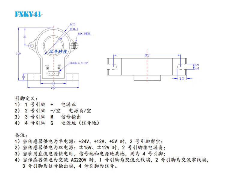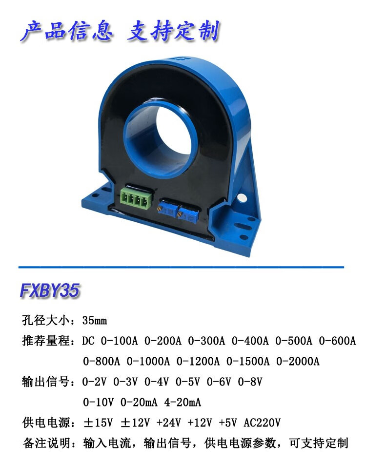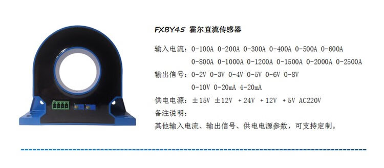 Closed loop DC current sensor FXBY35 transmitter transformer 200A500A800A1000A DC0-100A DC0-2V dual power supply 15V