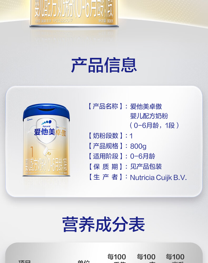 Aptamil Zhuao Stage 1 Infant Formula (0-6 months) 800g*1 can (0 yuan membership)