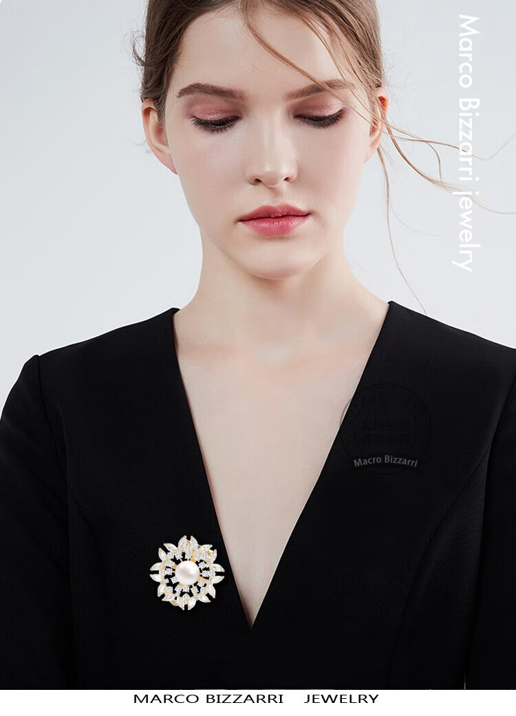 Marco Bizzarri brand brooch, light luxury flower brooch, high-end women's exquisite suit corsage, anti-exposure pin, women's luxury accessories, gift to teacher on Teacher's Day, gift to mother on Mother's Day