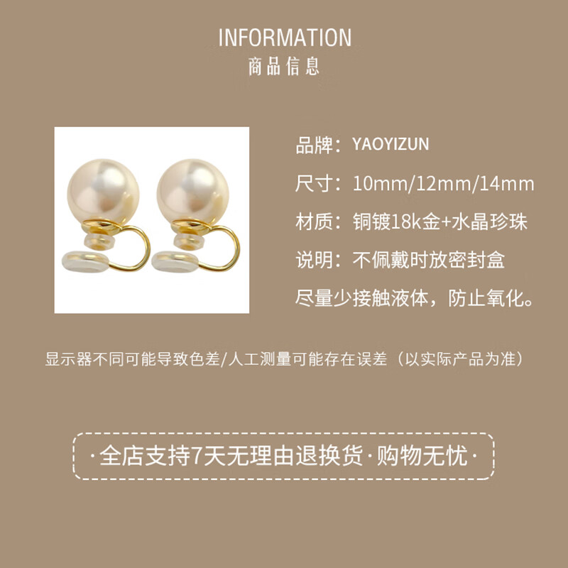 YaoYiZun Pearl Ear Clips without Piercing Women's Valentine's Day Gift Light Luxury Temperament Birthday Gift Light Luxury Earrings Pearl Ear Clips Without Piercing 14mm Double Spacer Style